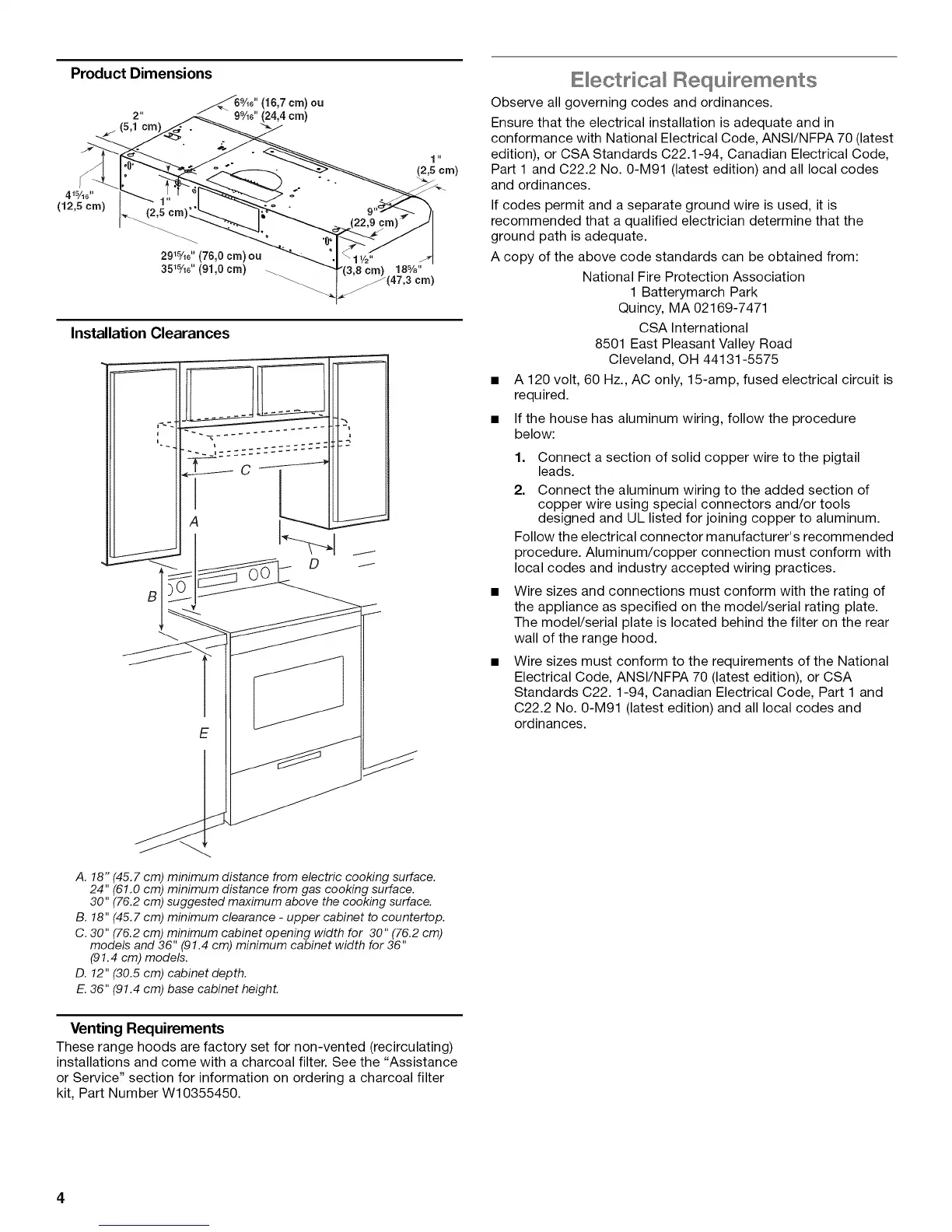 Electrical Code, ANSI/NFPA 70 (latest edition), or CSA