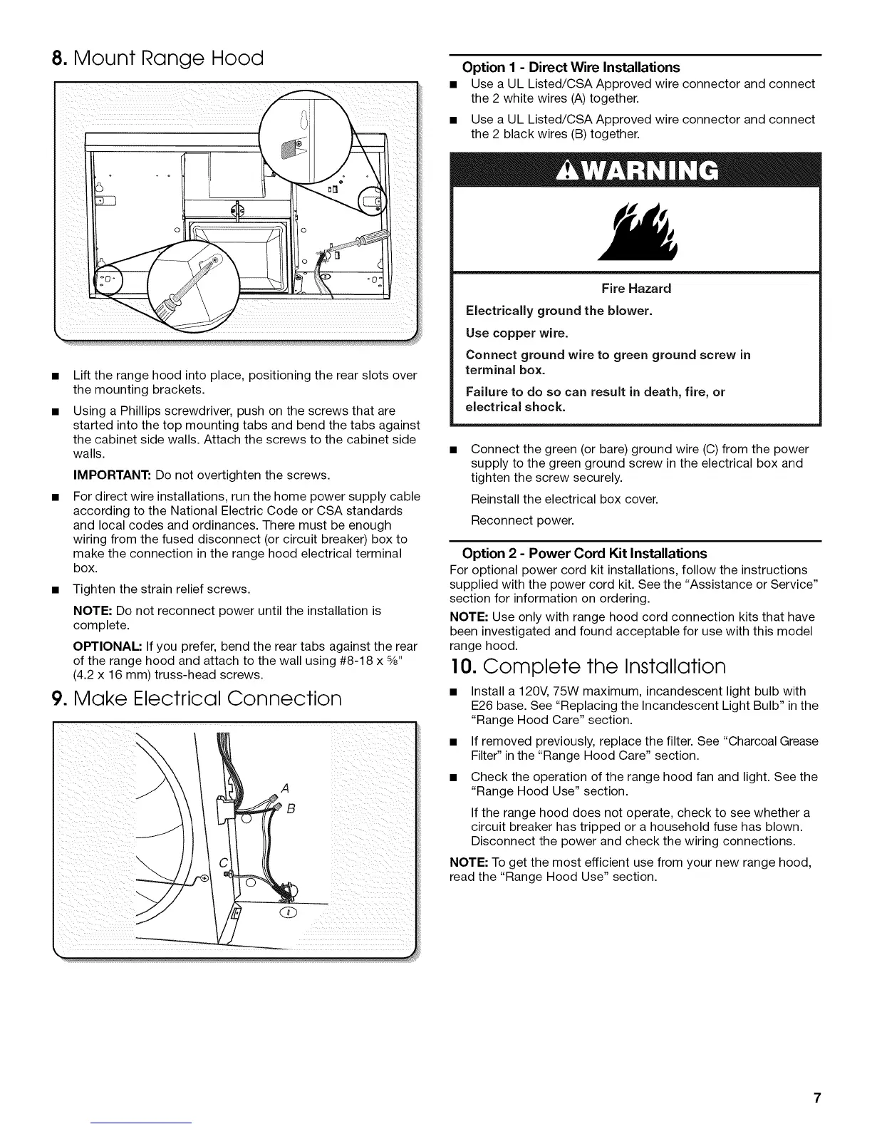 of the range hood and attach to the wall using #8-18 x 5/8"