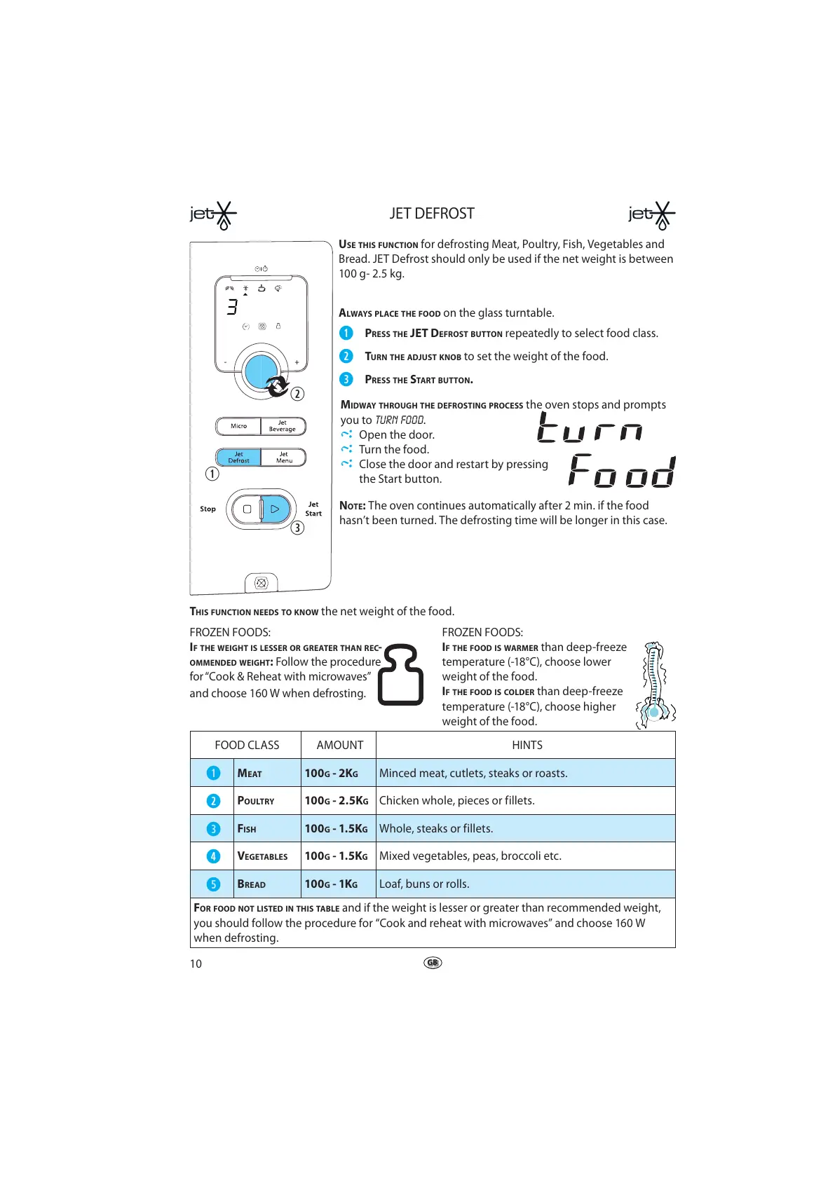 PRESS THE JET DEFROST BUTTON repeatedly to select food class.