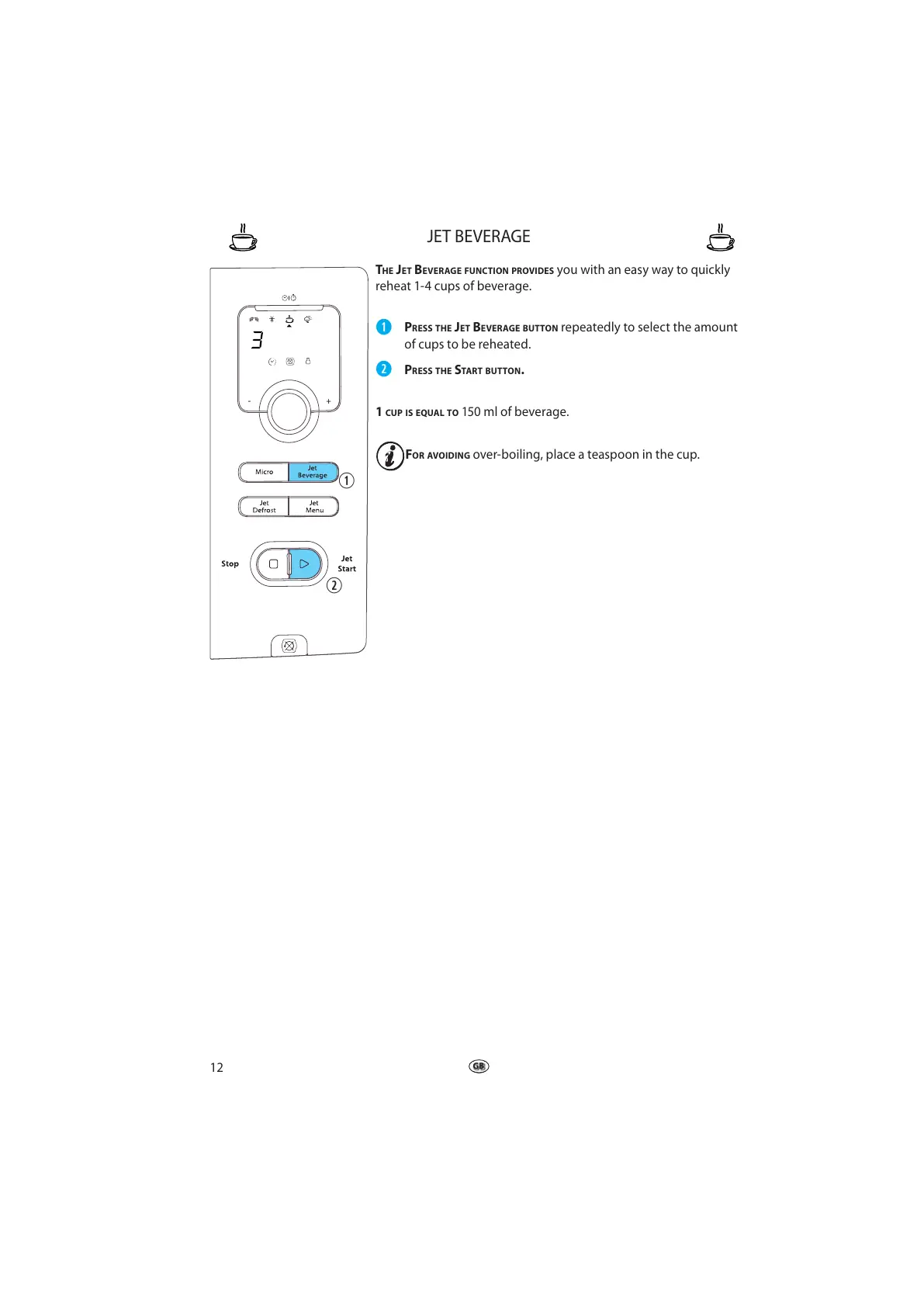 PRESS THE JET BEVERAGE BUTTON repeatedly to select the amount