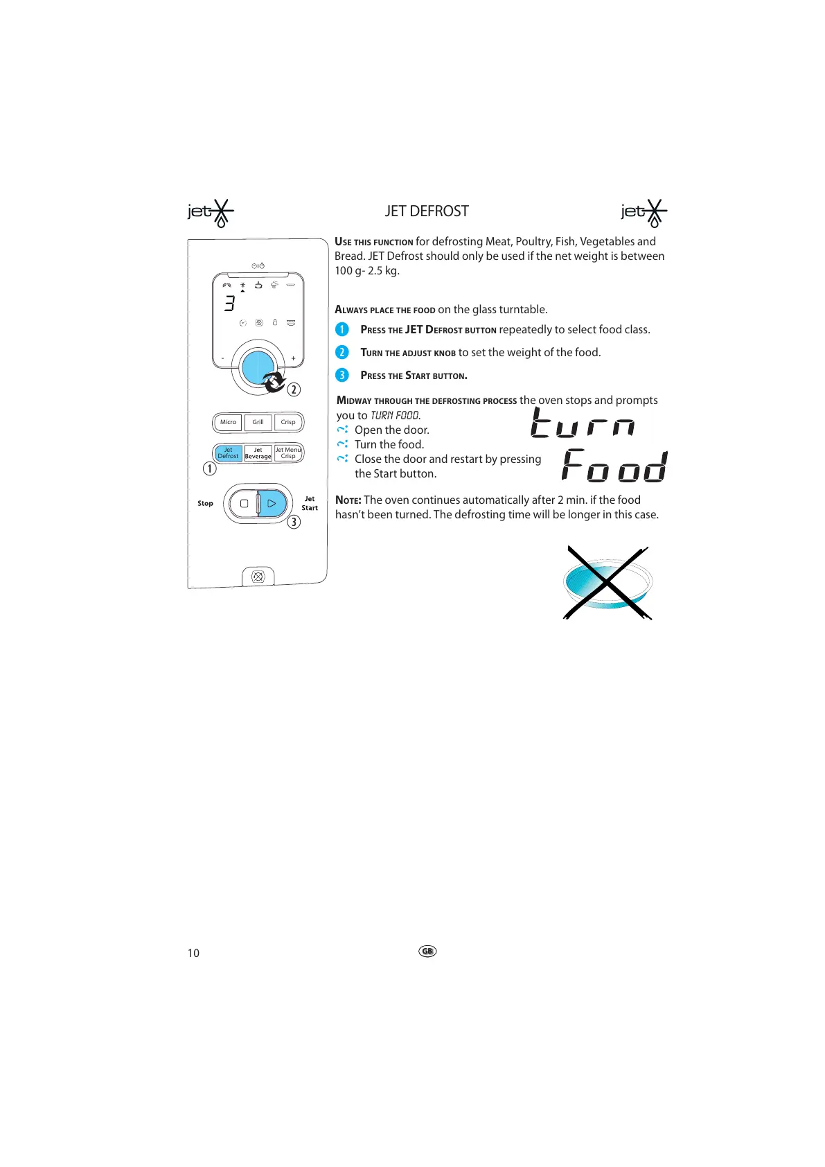 Bread. JET Defrost should only be used if the net weight is between