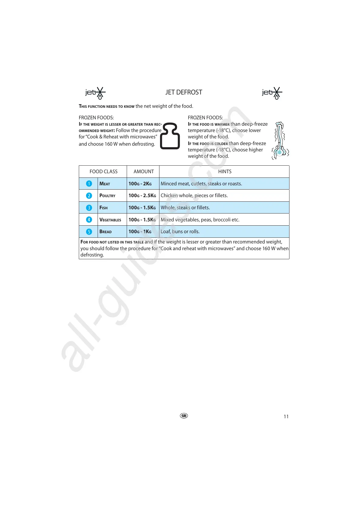 and choose 160 W when defrosting.