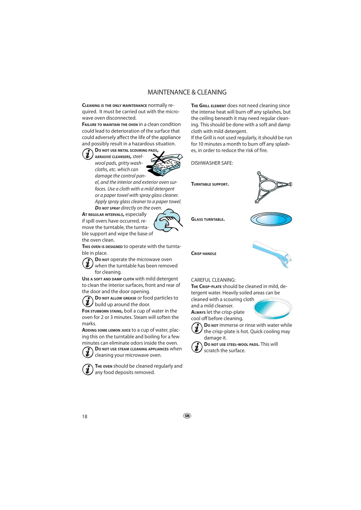 THE CRISP-PLATE should be cleaned in mild, de-