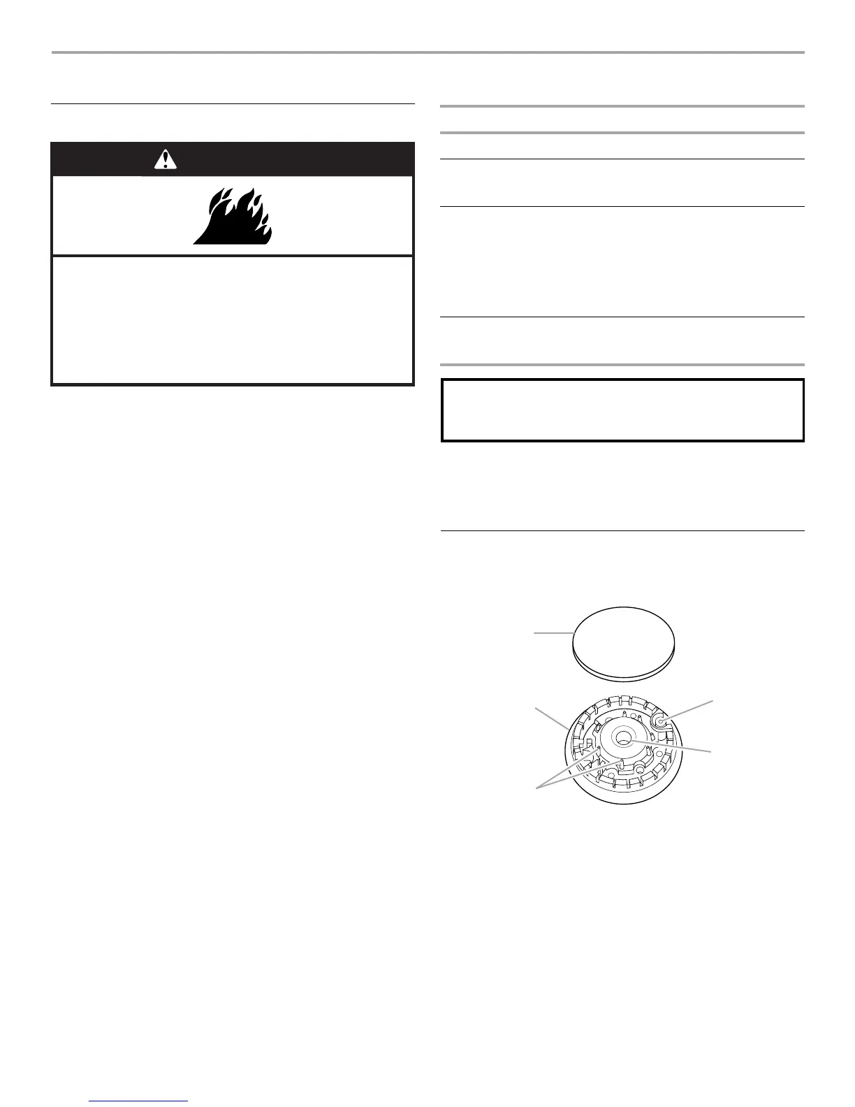 Burner cap: Always keep the burner cap in place when using a