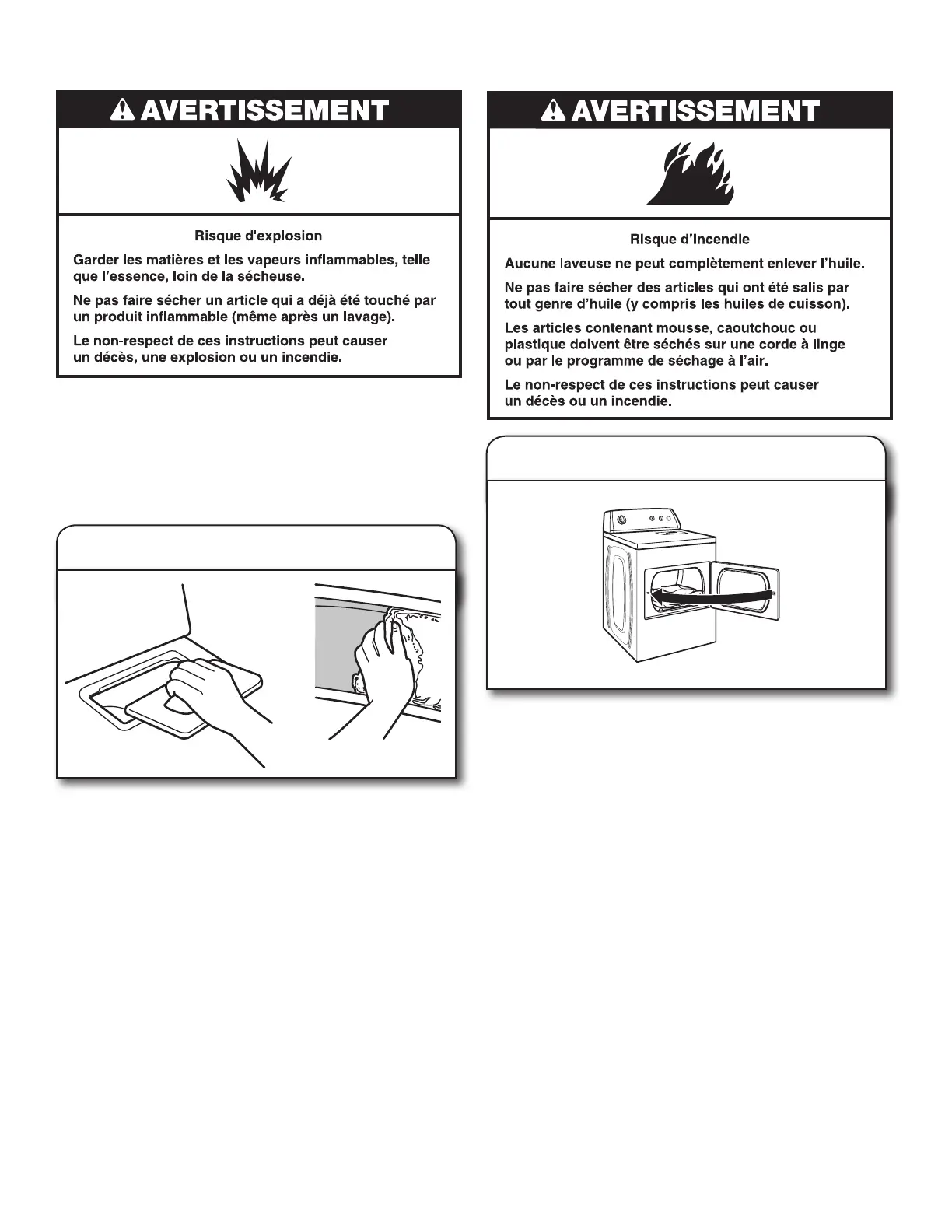 Avant d’utiliser la sécheuse, essuyer le tambour de la sécheuse