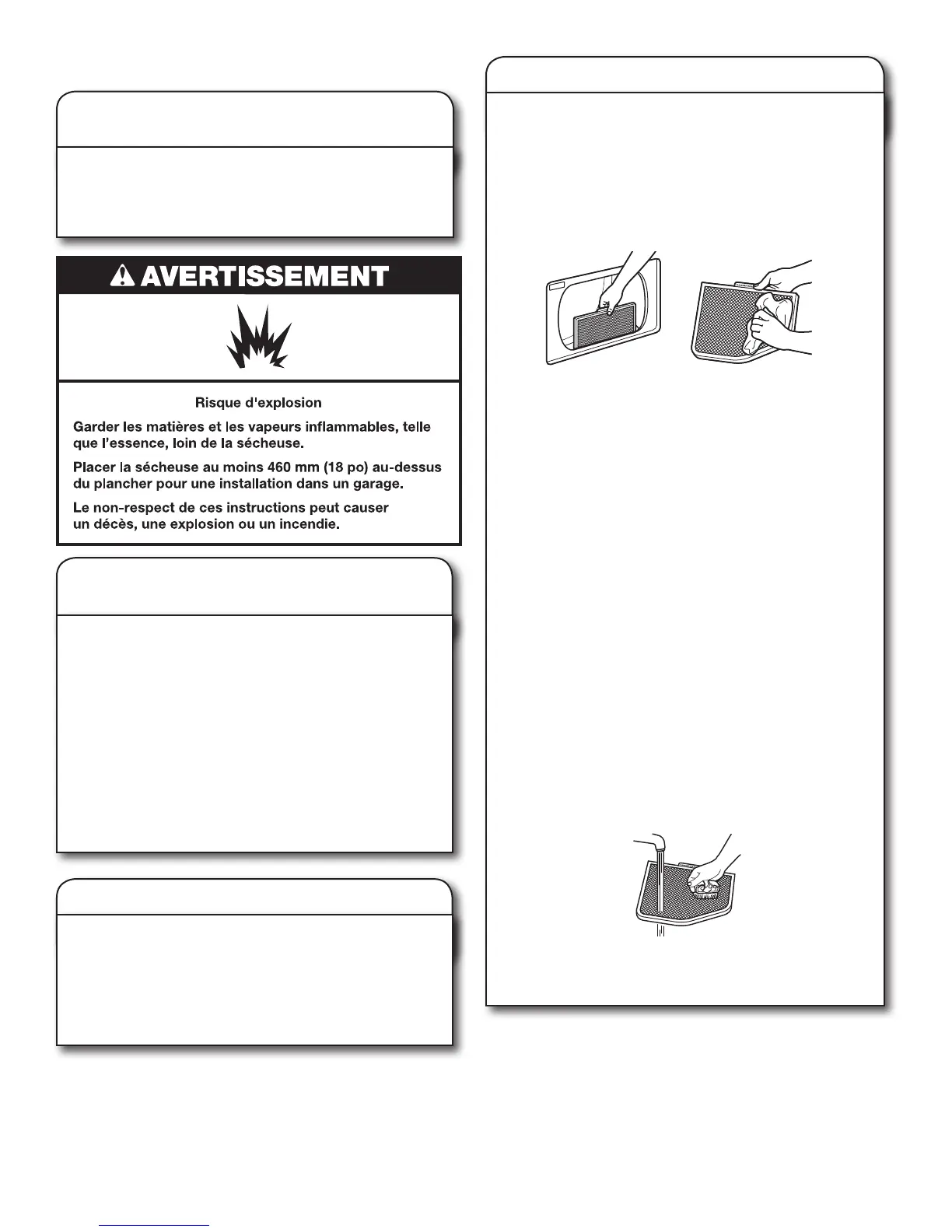 Ne pas faire fonctionner la sécheuse avec un ltre à