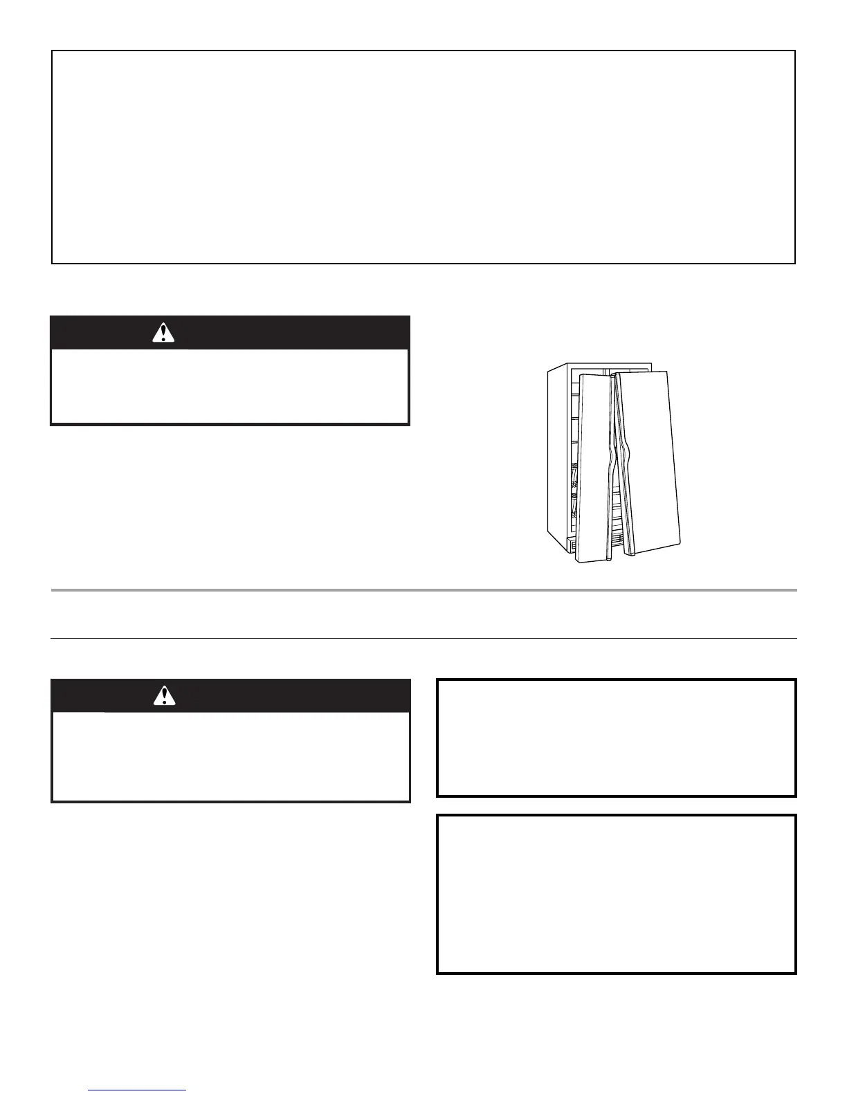 ■ Use two or more people to move and install refrigerator.