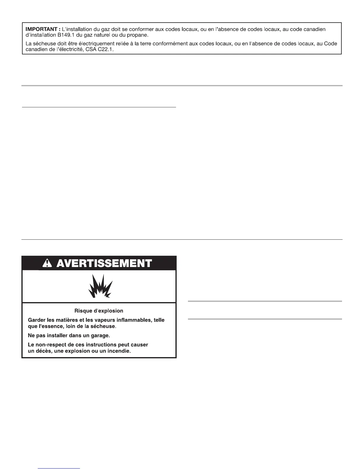 ou prohibent l’installation d’une sécheuse dans un garage, un
