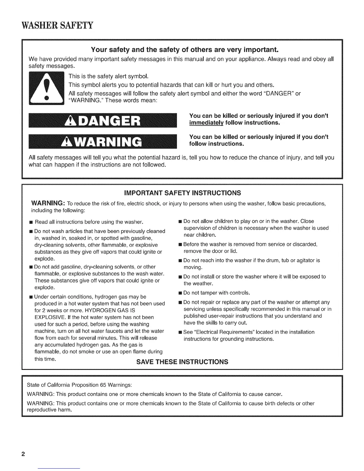 WARNING: To reduce the risk of fire, electric shock, or injury to persons when using the washer, follow basic precautions,