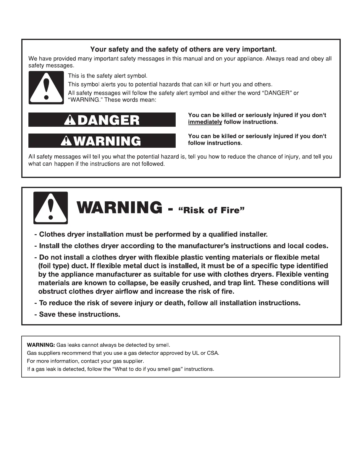 Whirlpool W10343071A - Washer;Dryer Safety; Safety Alert Symbols and Definitions