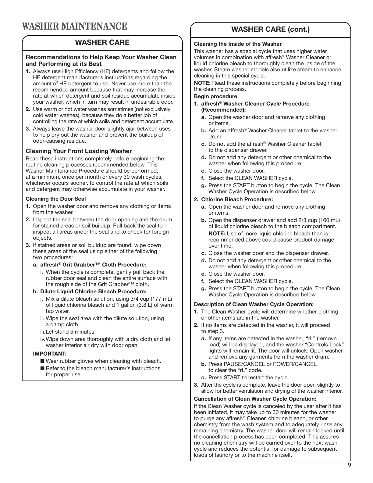 WASHER CARE (cont.)