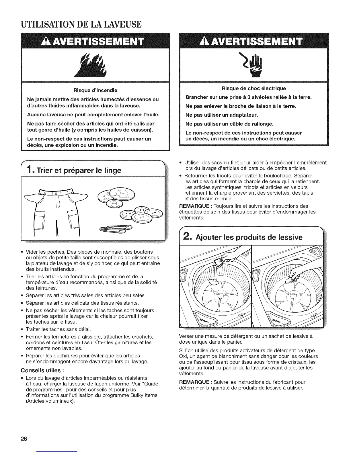 UTILISATION DE LA LAVEUSE