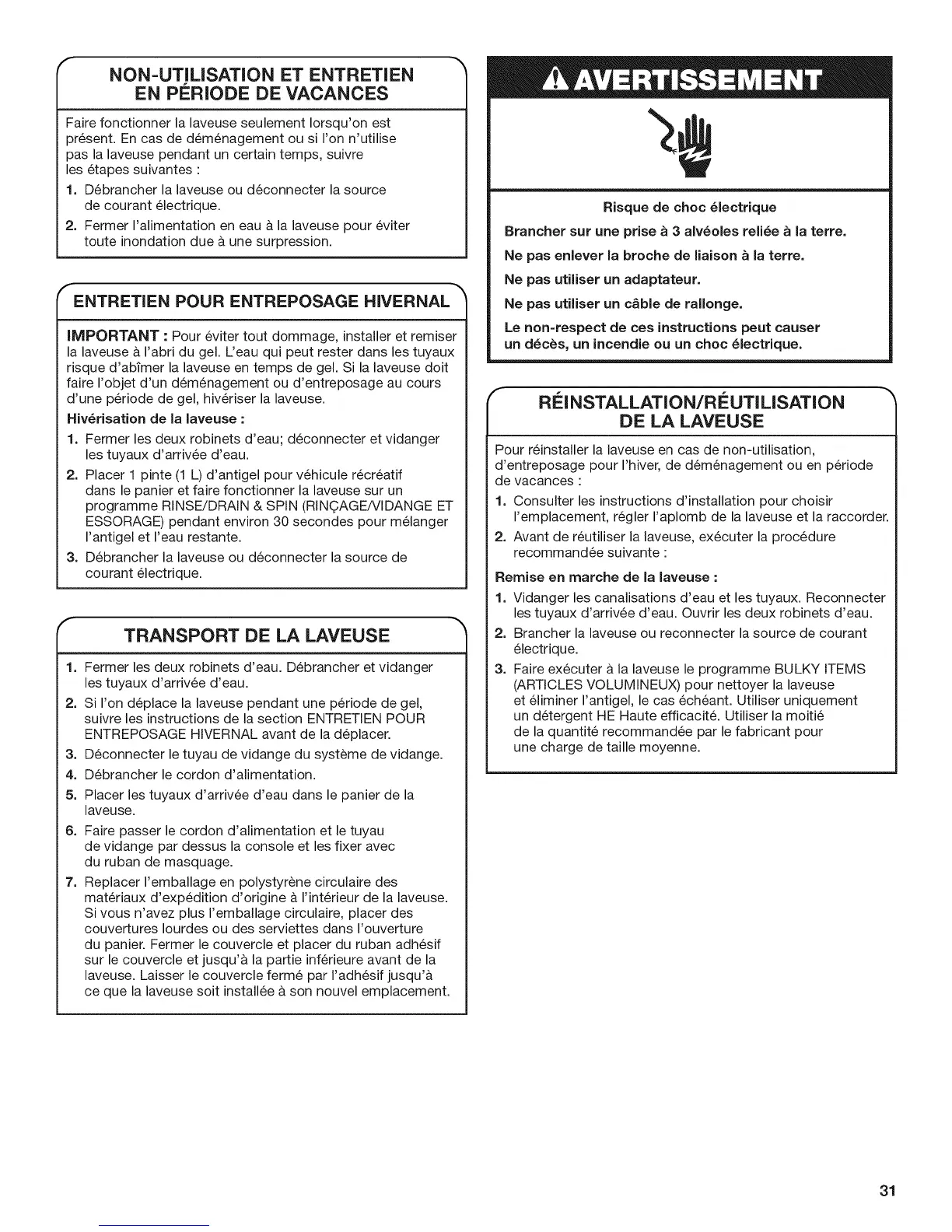 2. Si I'on d6place la laveuse pendant une p6riode de gel,