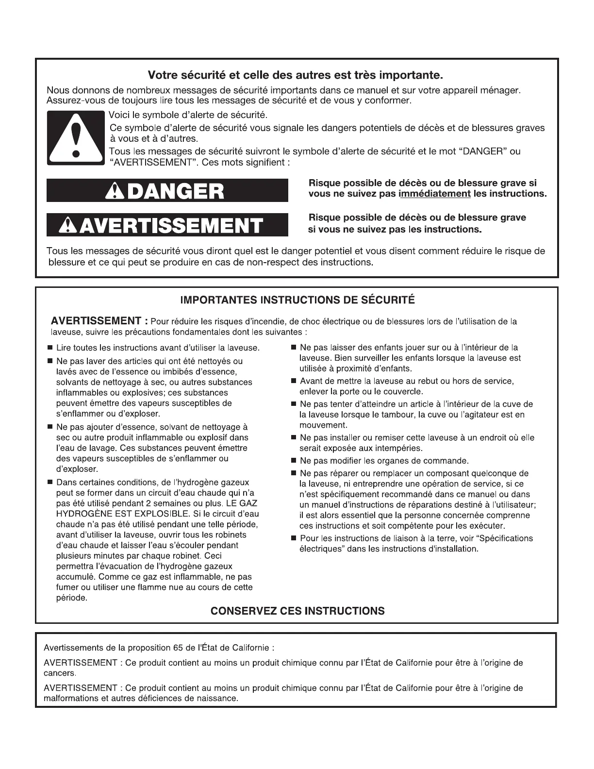 Whirlpool W10550271B - Sécurité de la Laveuse