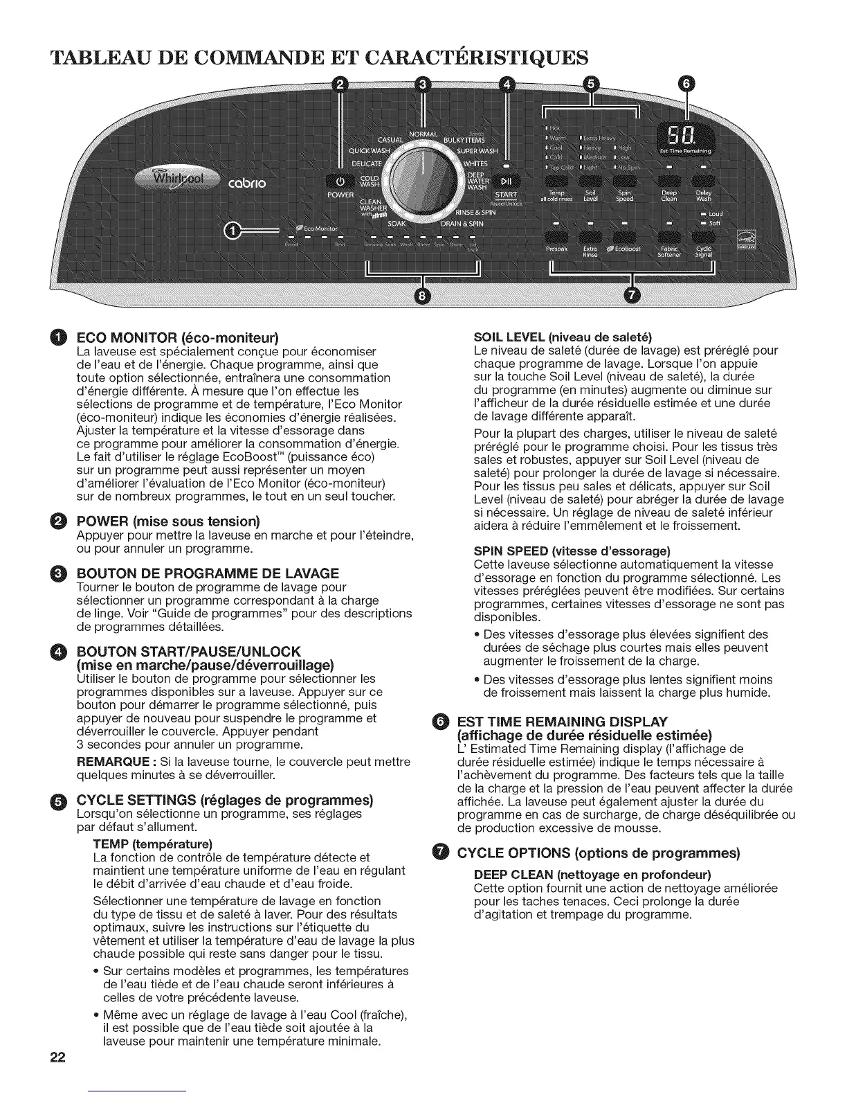 Appuyer pour mettre la laveuse en marche et pour 1'6teindre,
