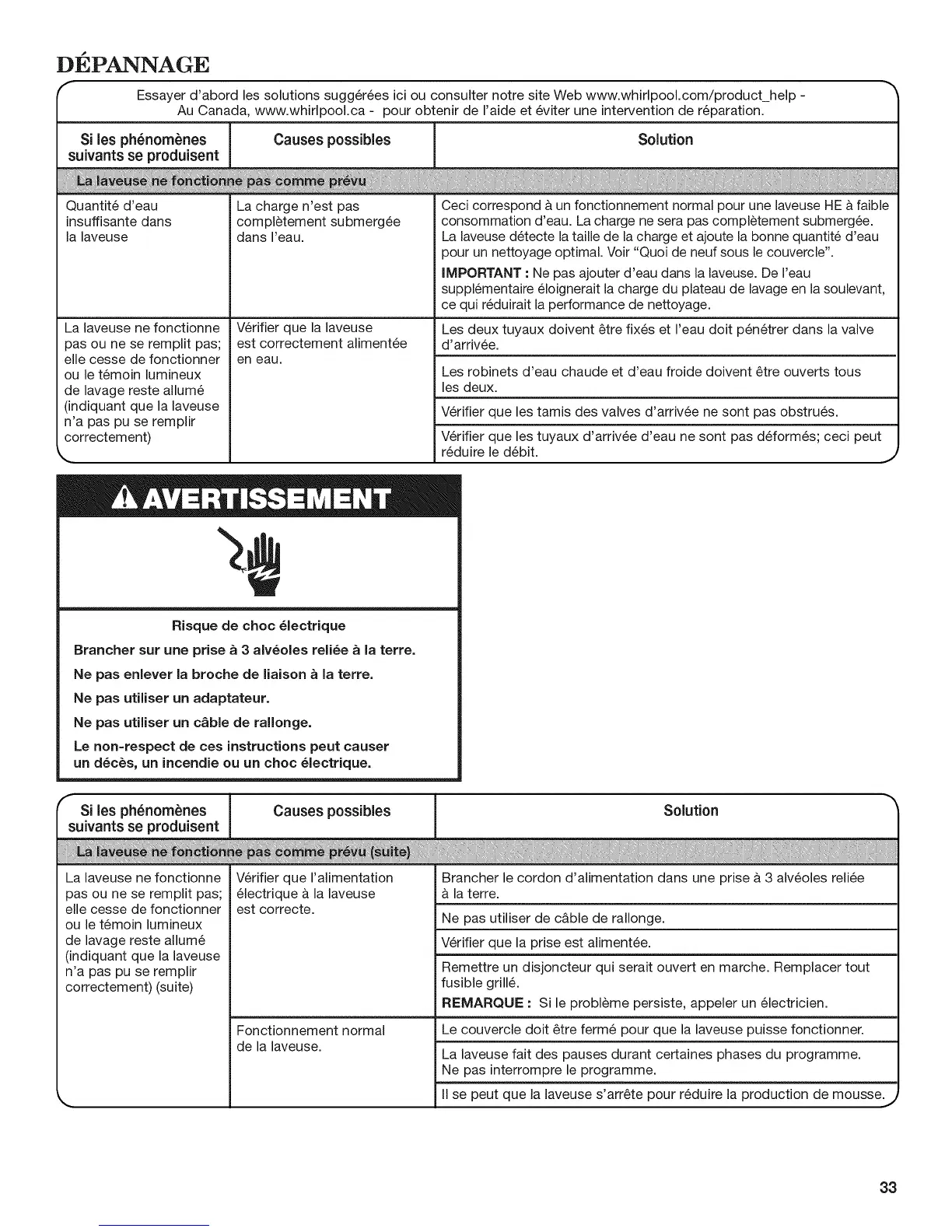 Essayer d'abord les solutions sugg6r6es ici ou consulter notre site Web www.whirlpool.com/product_help -