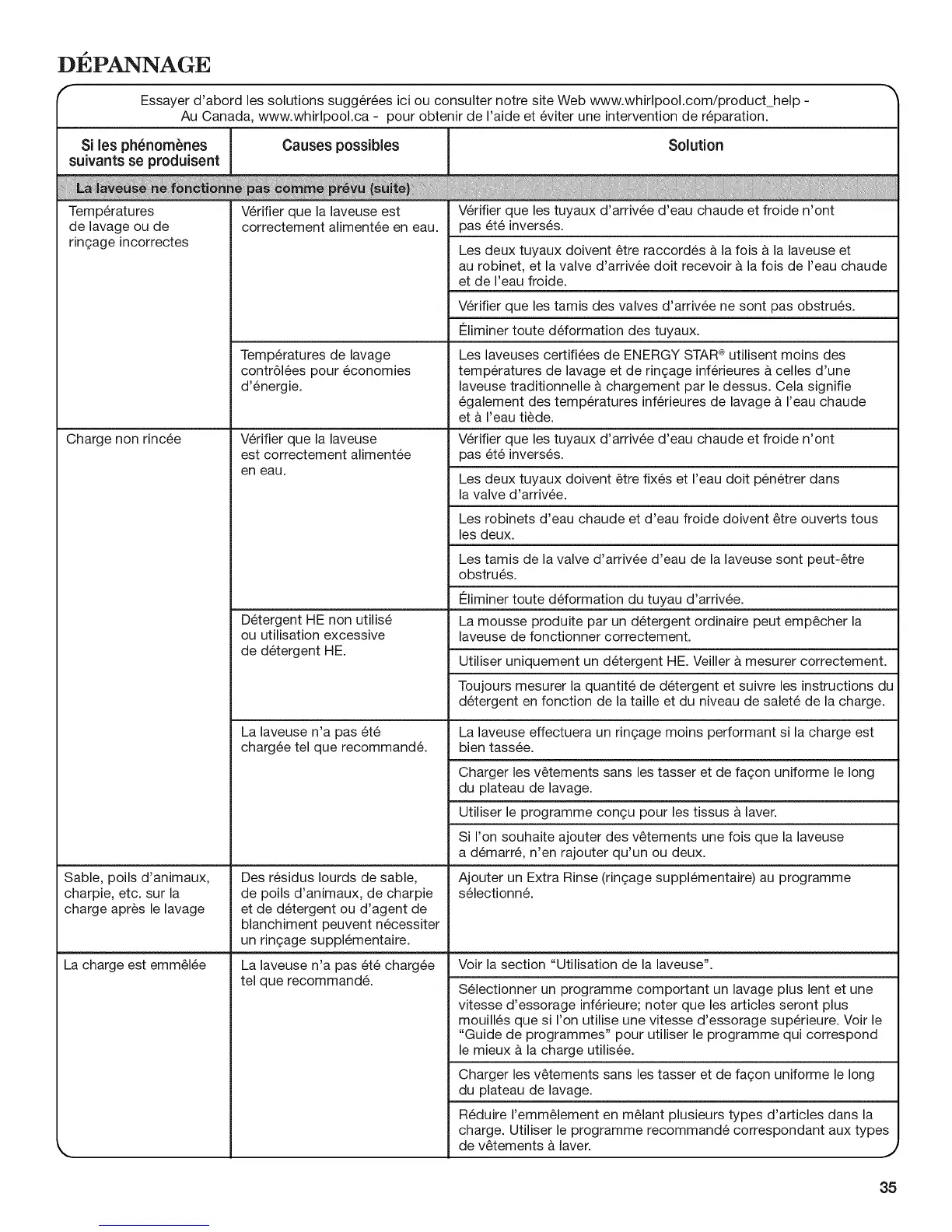 Essayer d'abord les solutions sugg6r6es ici ou consulter notre site Web www.whirlpool.com/product_help -