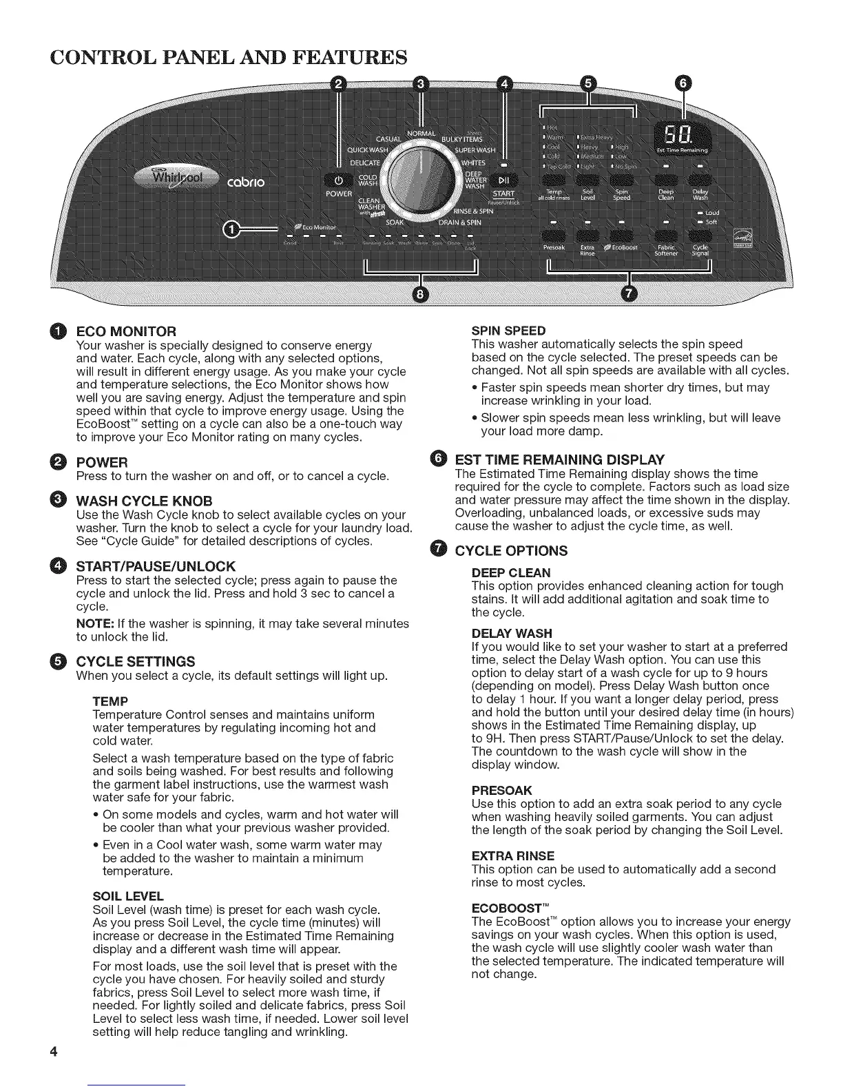 CONTROL PANEL AND FEATURES