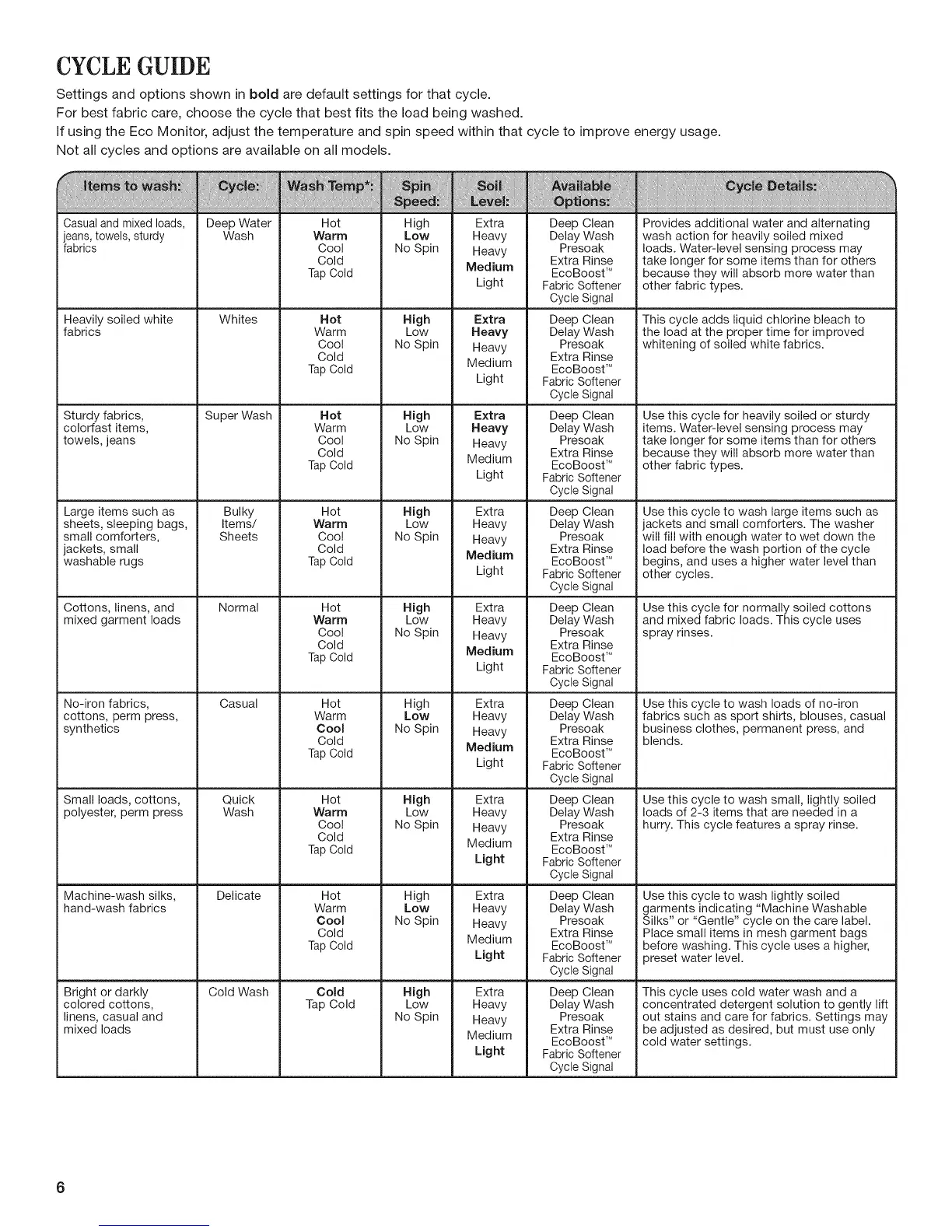 linens, casual and No Spin Heavy Presoak out stains and care for fabrics. Settings may