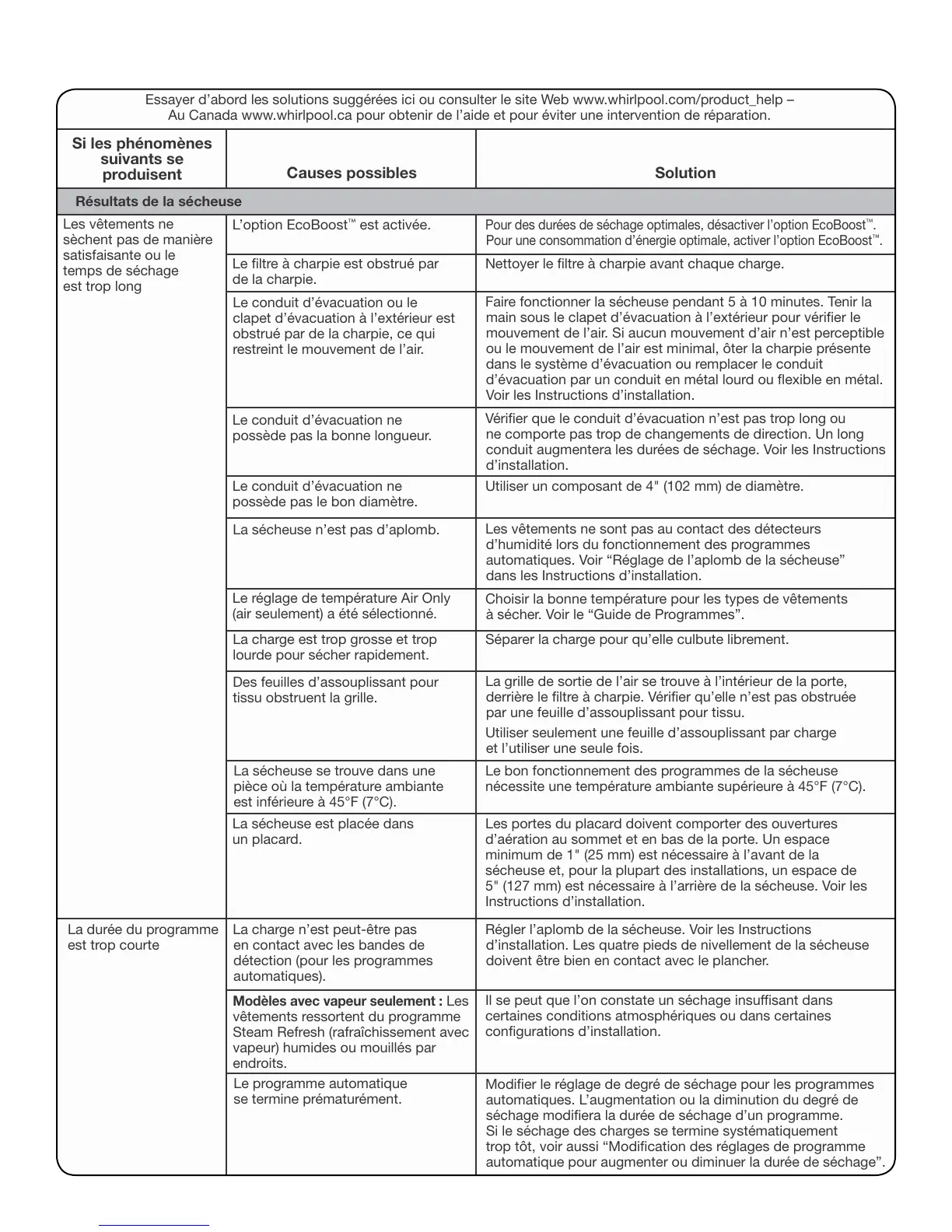 Au Canada www.whirlpool.ca pour obtenir de l’aide et pour éviter une intervention de réparation.