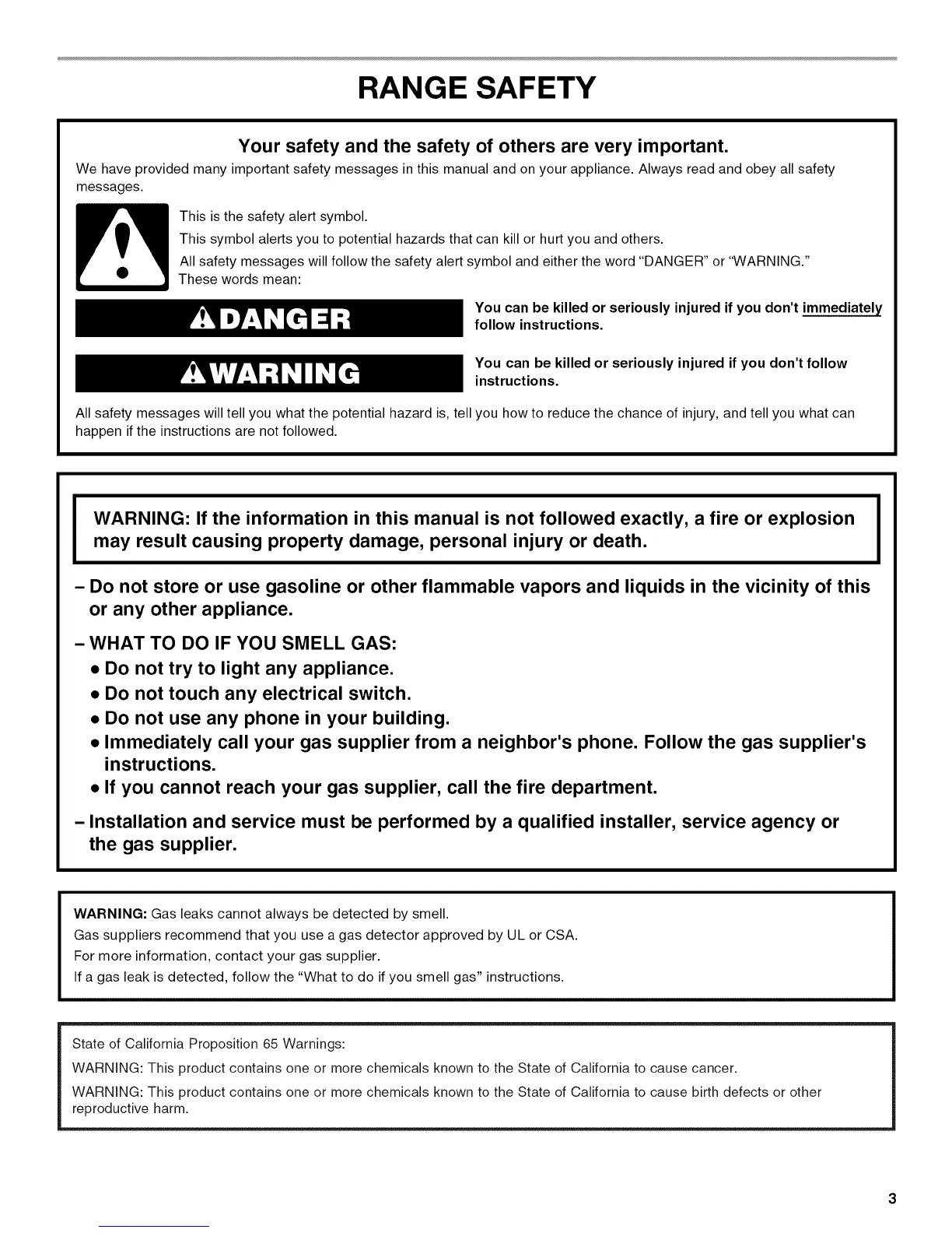 WARNING: Gas leaks cannot always be detected by smell.