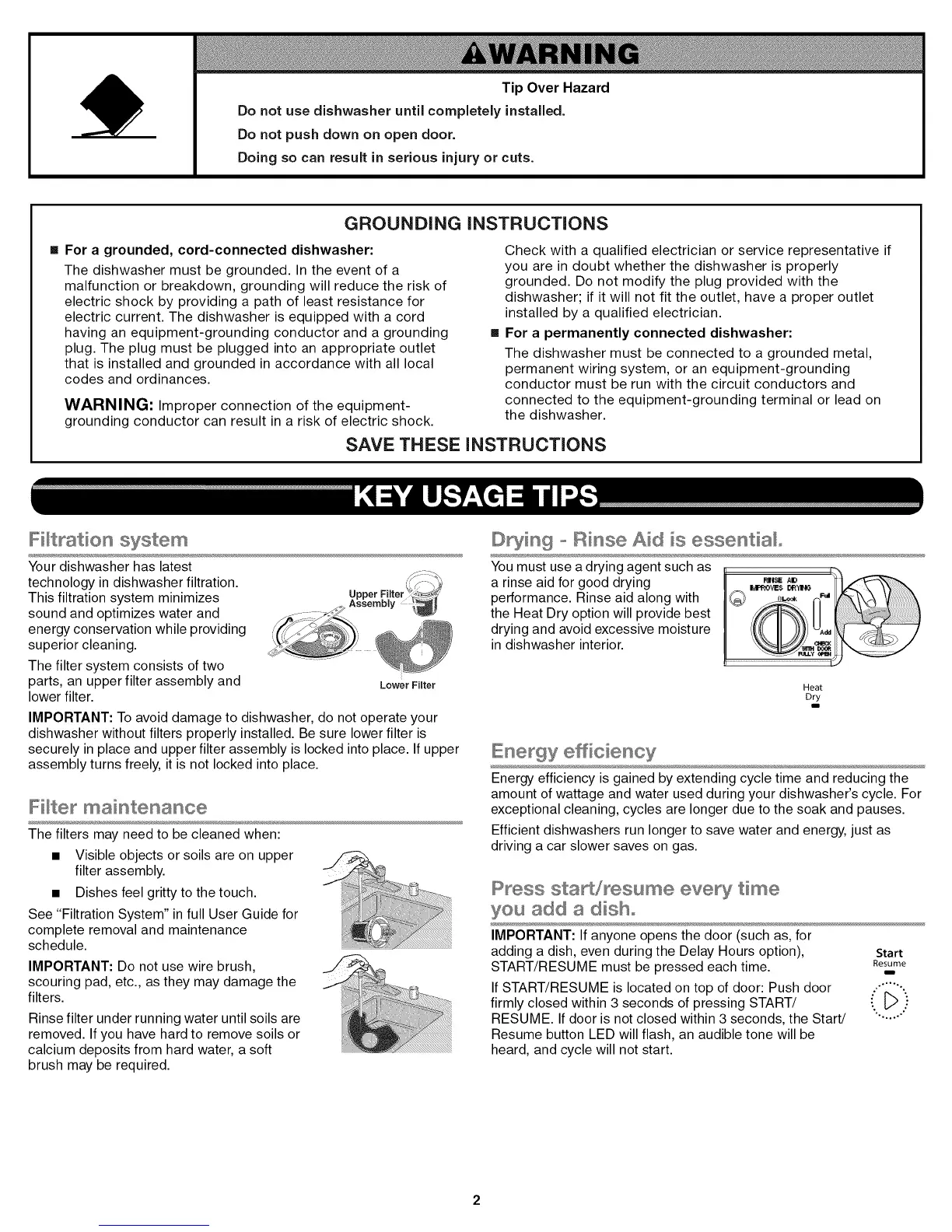 IMPORTANT: To avoid damage to dishwasher, do not operate your