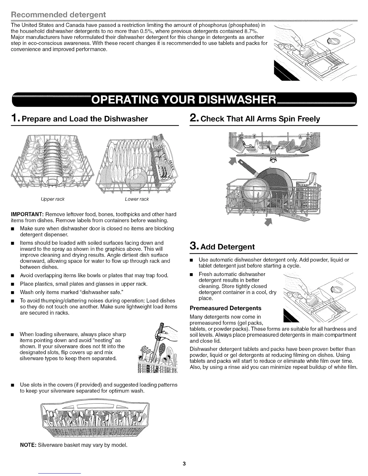 1.Prepare and Load the Dishwasher 2. Check That All Arms Spin Freely