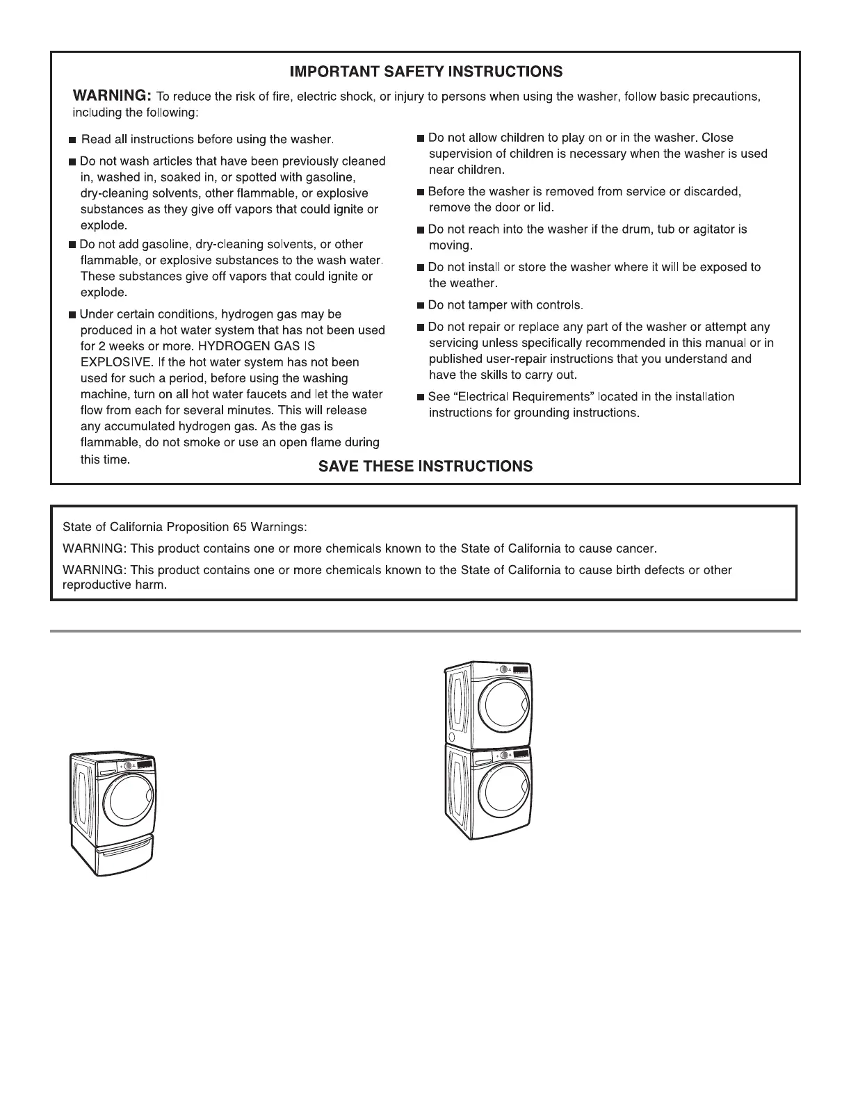 Customize your new washer and dryer with the following
