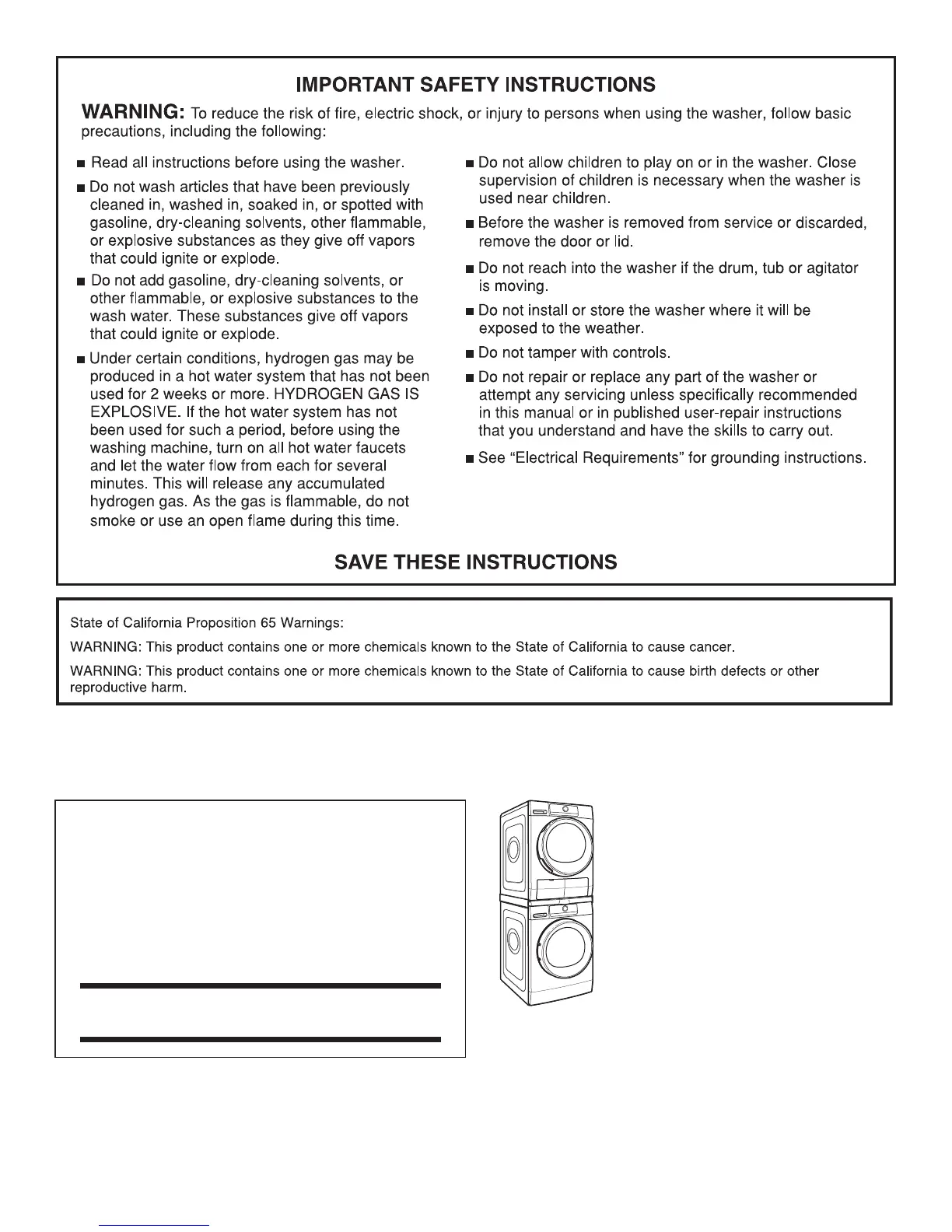 Customize your new washer and dryer with the following