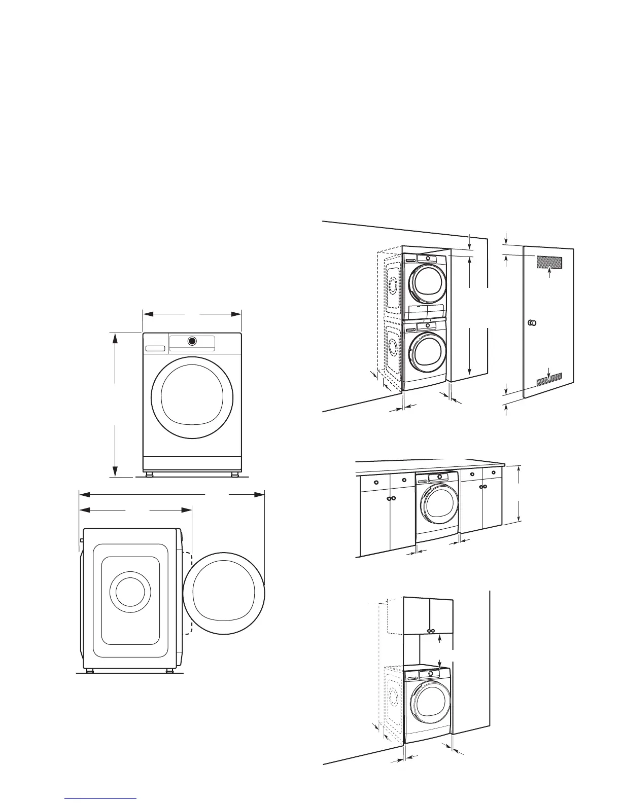 de 1" (25 mm) de tous les côtés de la laveuse pour réduire