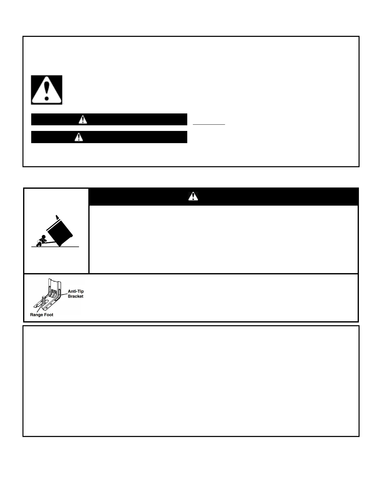 Do not operate range without anti-tip bracket installed and engaged.