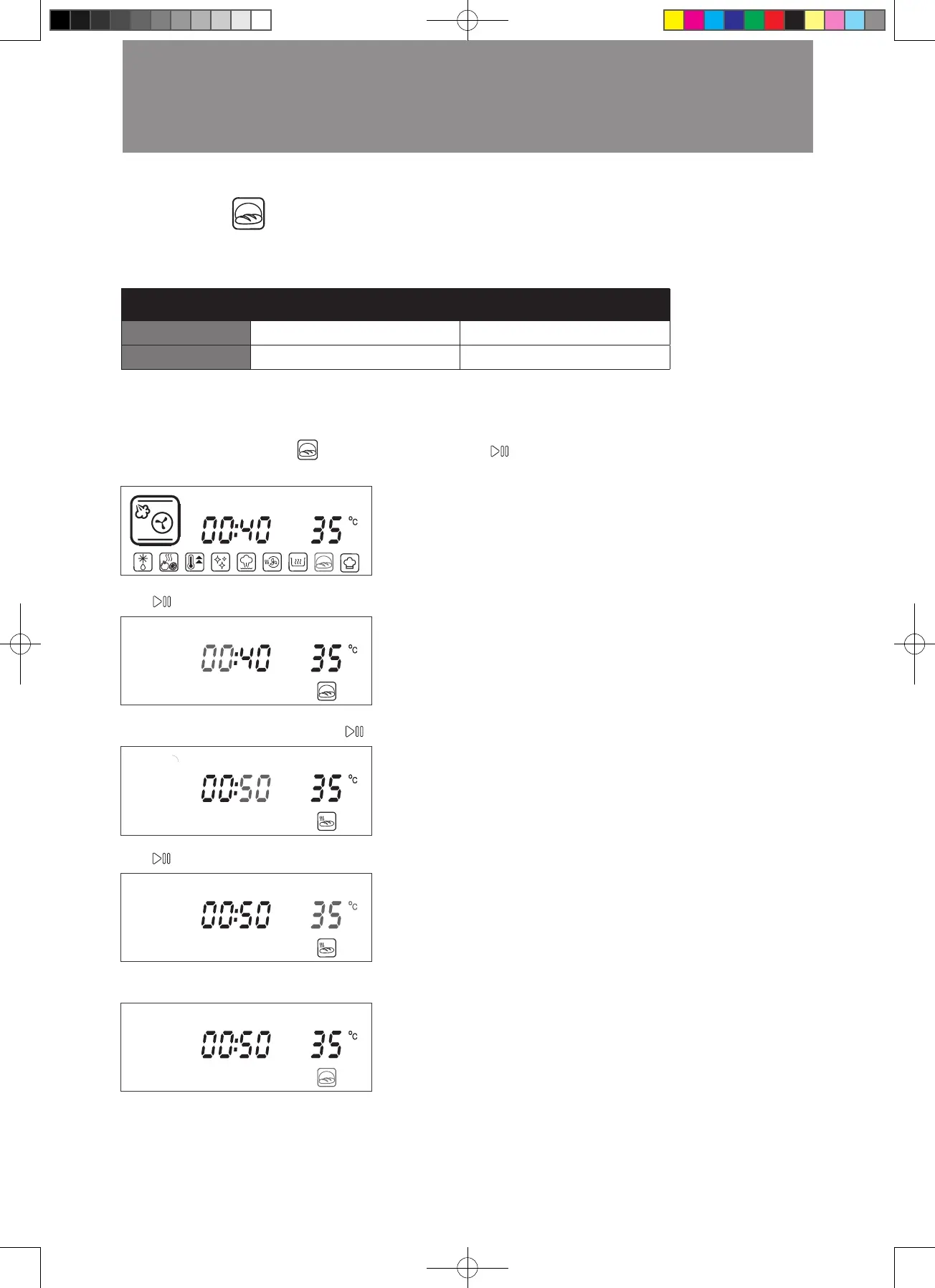此模式以蒸氣運作,使爐腔達至已調校的穩定而潮濕的環境。用於麵糰發酵:如薄餅的餅底或製作麵包的麵糰。