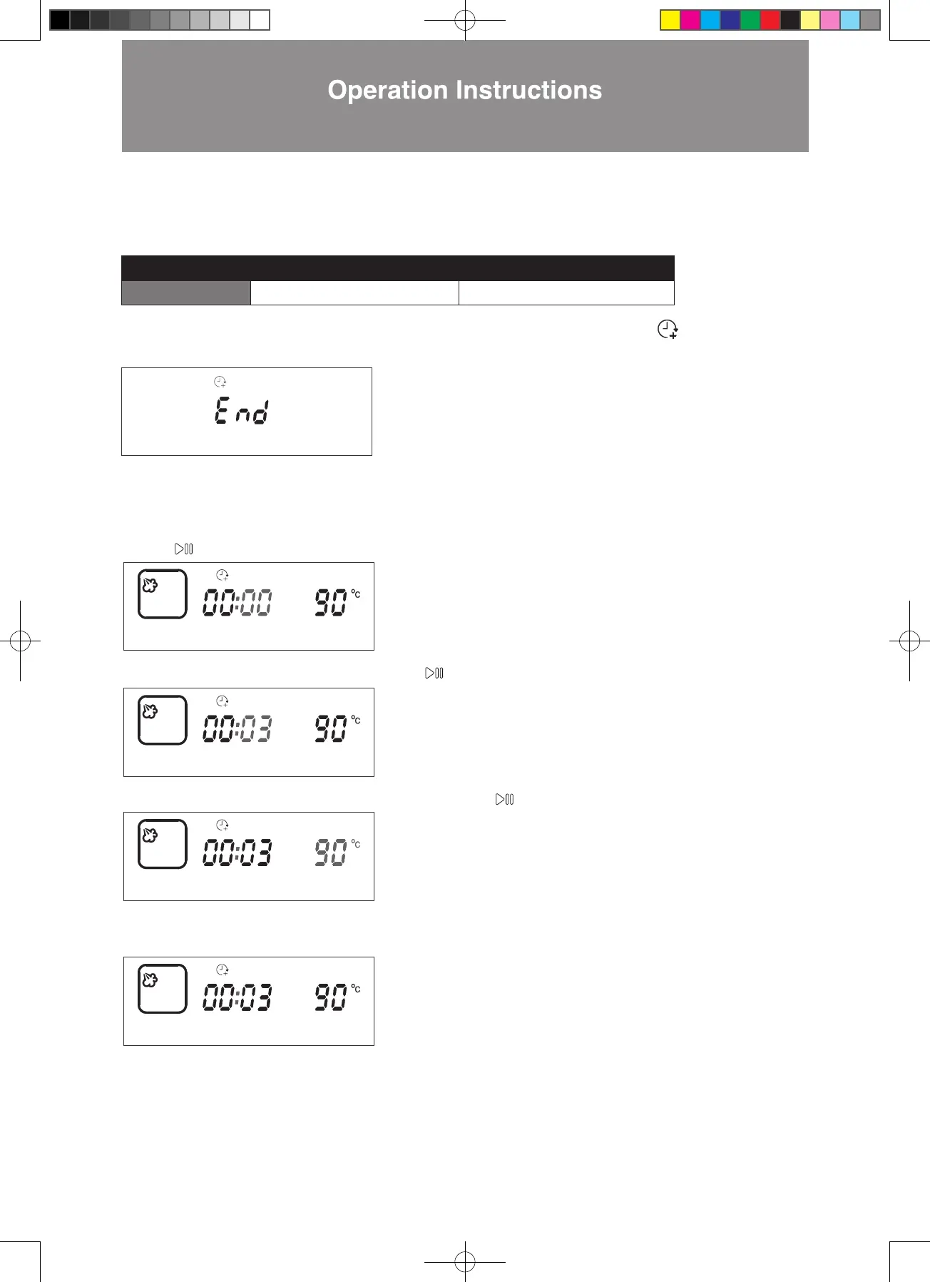 Example: Cooking is completed and need to increase the cooking time by 3 minutes, cooking temperature is 90°C.