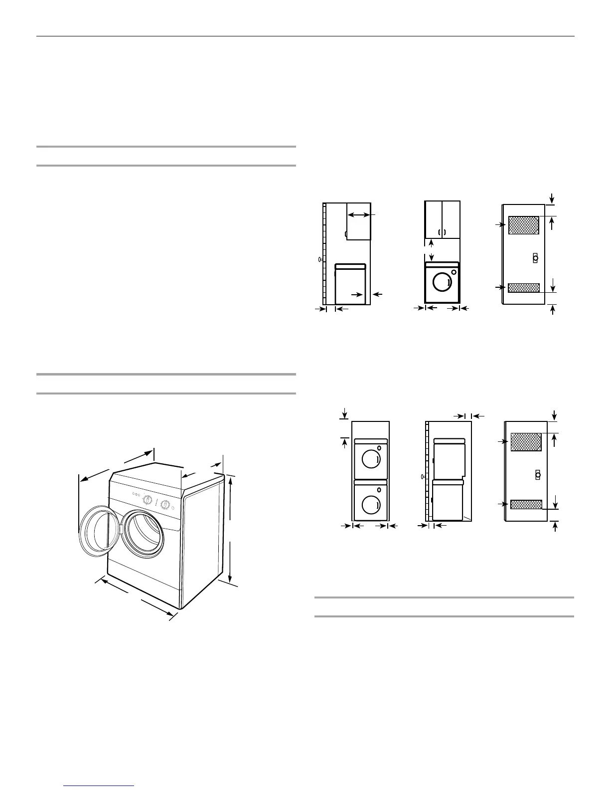 ■ Additional spacing of 1" (2.5 cm) on all sides of the washer is