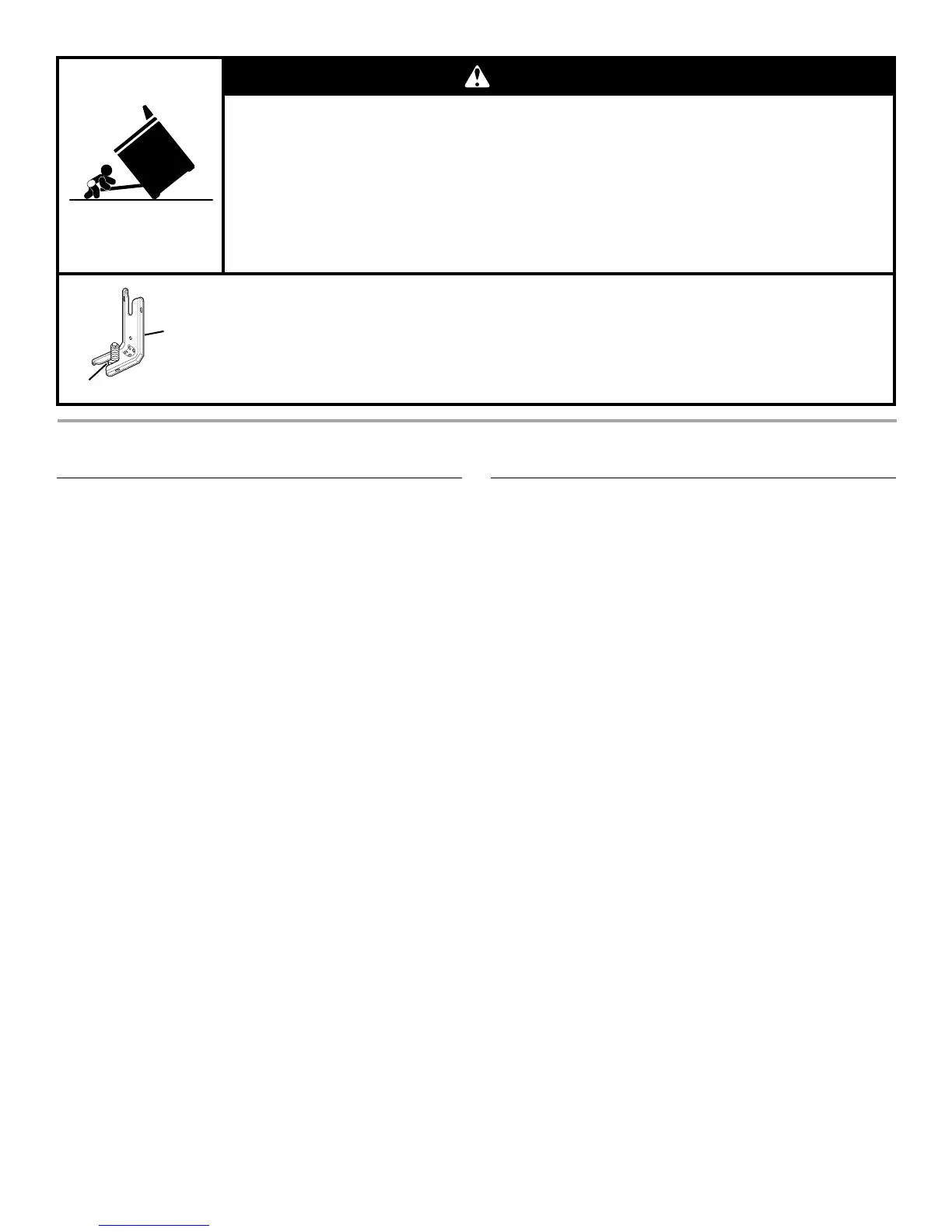 ■ The anti-tip bracket must be installed. To install the anti-tip