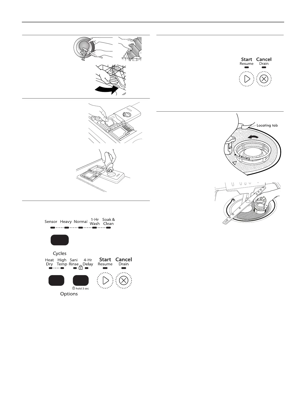 wash cycle, options, and