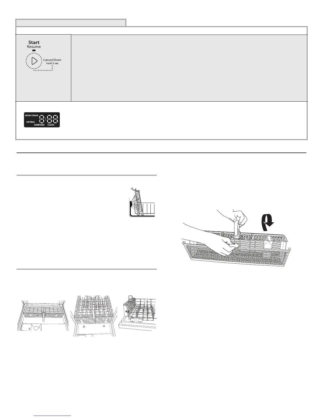 évacuer l'eau complètement. Appuyer sur START/RESUME (mise en marche/reprise) pendant 3 secondes.