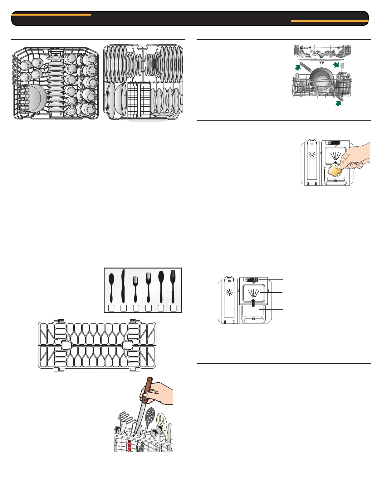 ■ Avoid overlapping items, like bowls or plates, that may trap food.