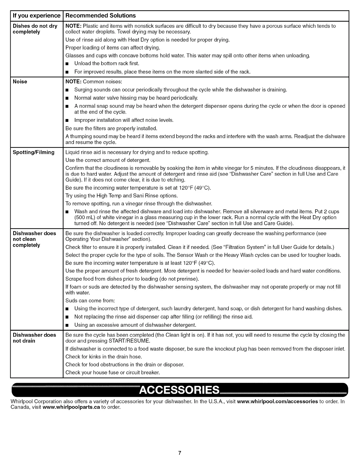 Whirlpool Corporation also offers a variety of accessories for your dishwasher. In the U.S.A., visit www.whirlpool.com/accessories to order. In