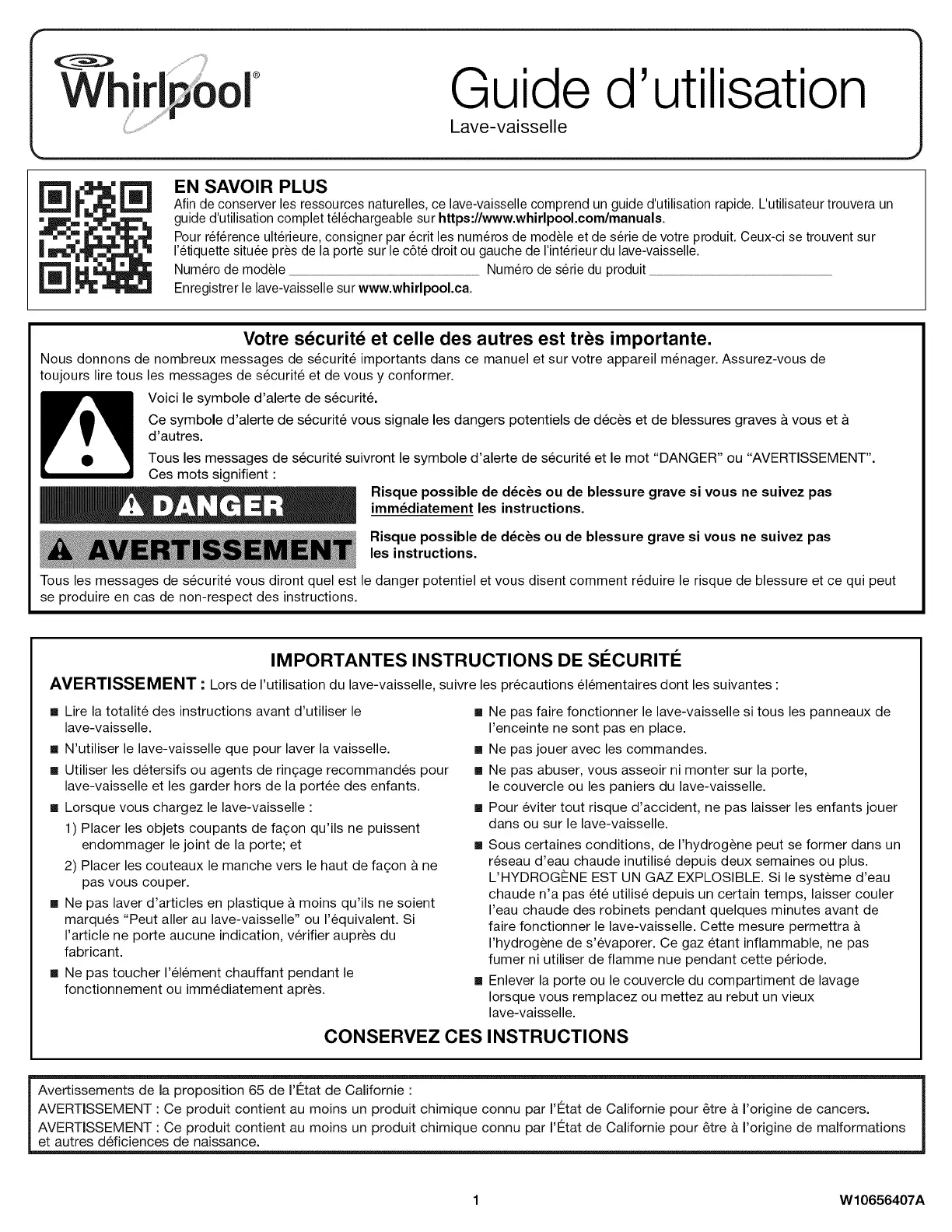 Enregistrer le lave-vaisselle sur www.whirlpool.ca.