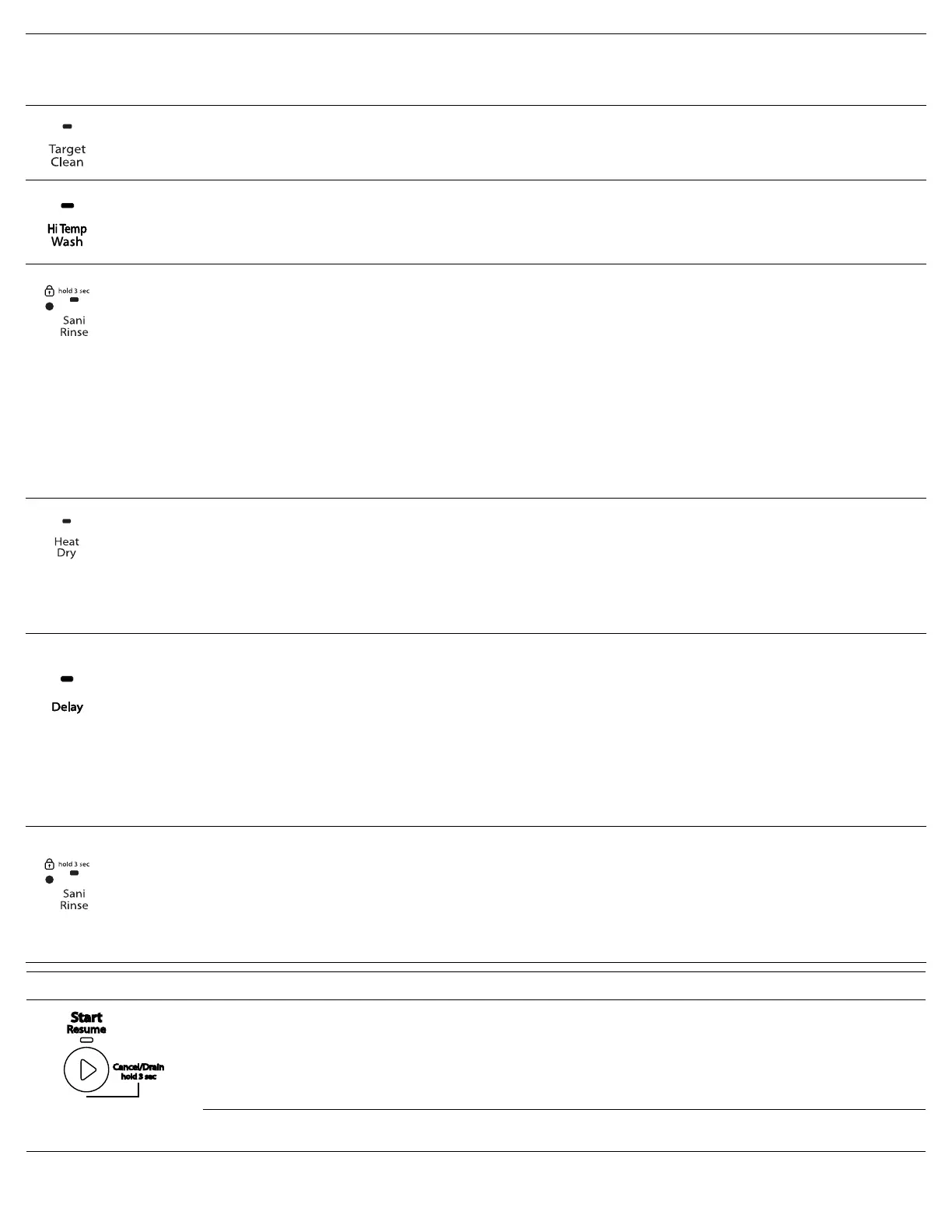 To turn off Lock, press and hold SANI RINSE/CONTROL LOCK or DELAY (depending on model) for 3 seconds. Light turns off.