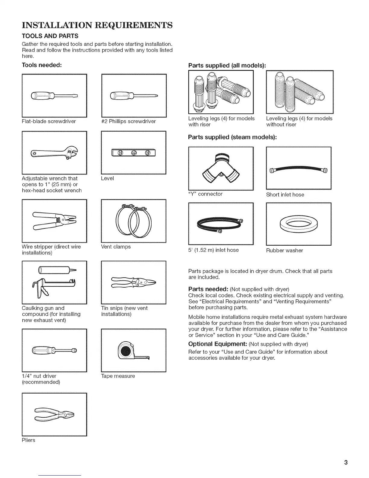 Parts needed: (Not supplied with dryer)