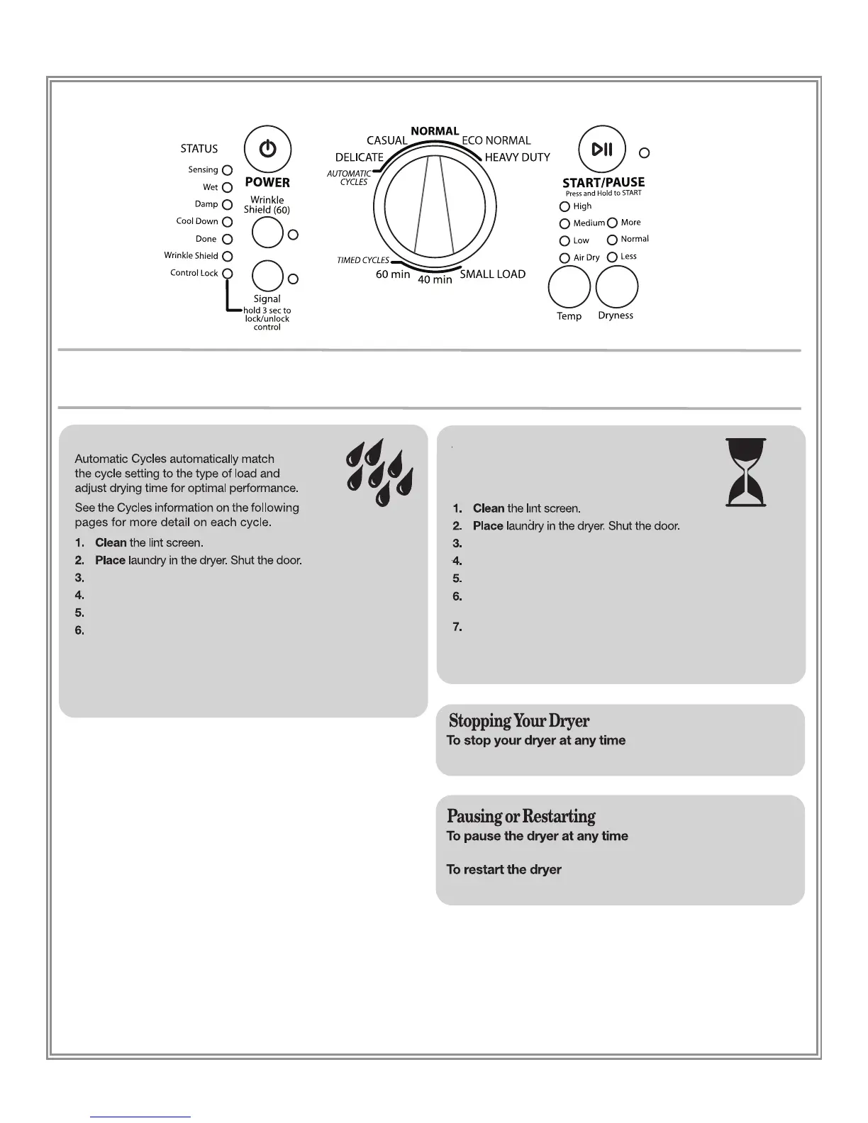 This Use and Care Guide covers several different models. Your dryer may not have all the cycles and features described.