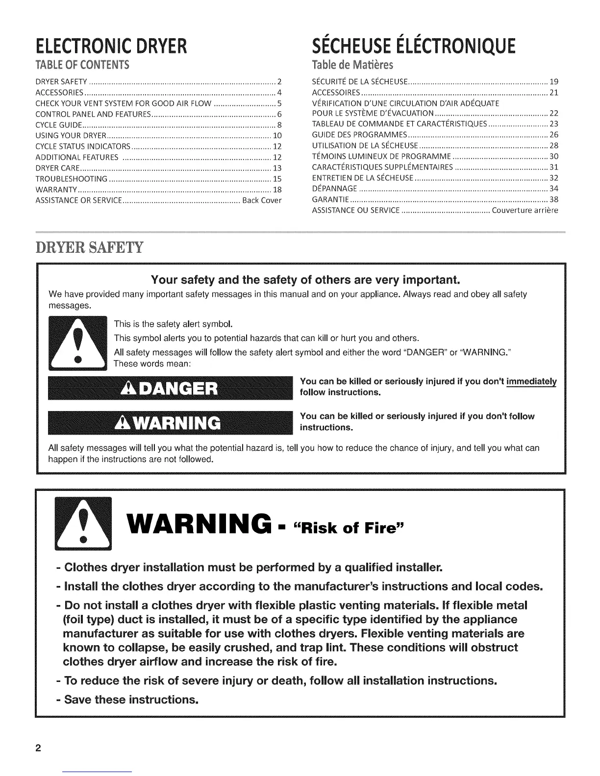 DRYER SAFETY .................................................................................... 2