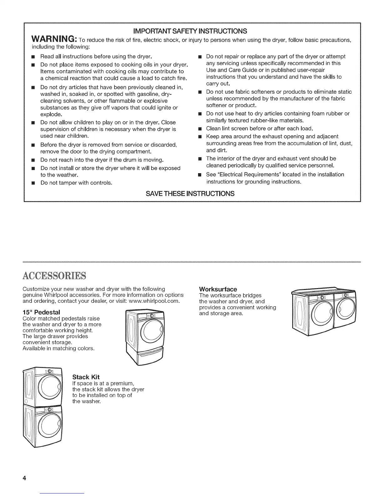 genuine Whirlpool accessories. For more information on options