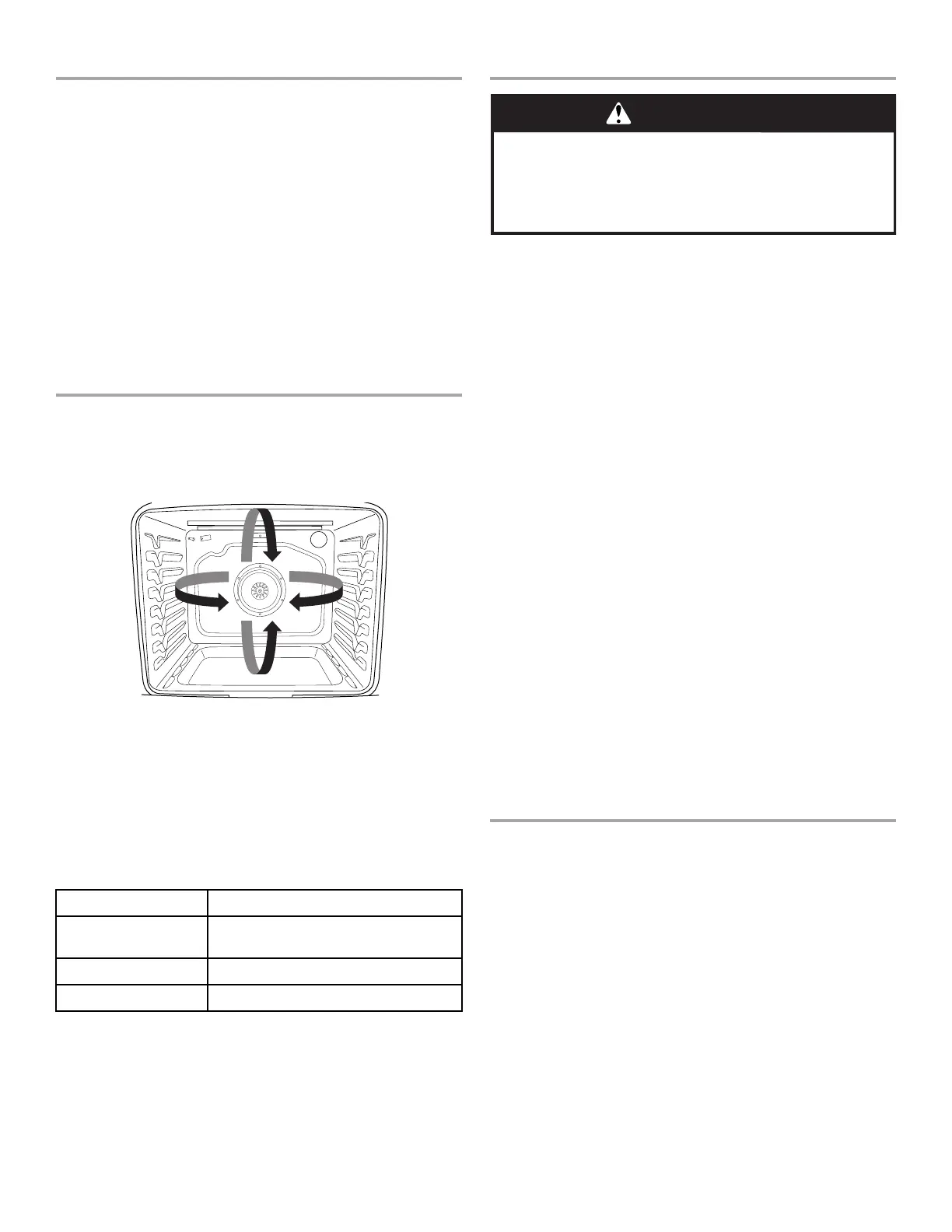 If the oven door is opened during convection cooking, the fan will