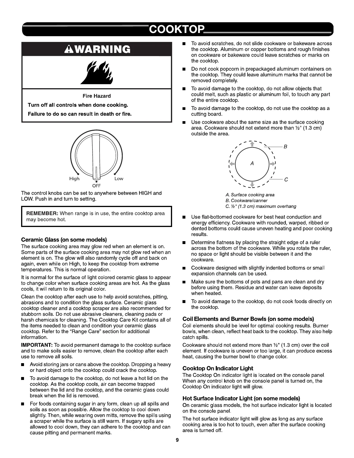 Whirlpool WEE730H0DW - COOKTOP; Cooktop Safety and Care
