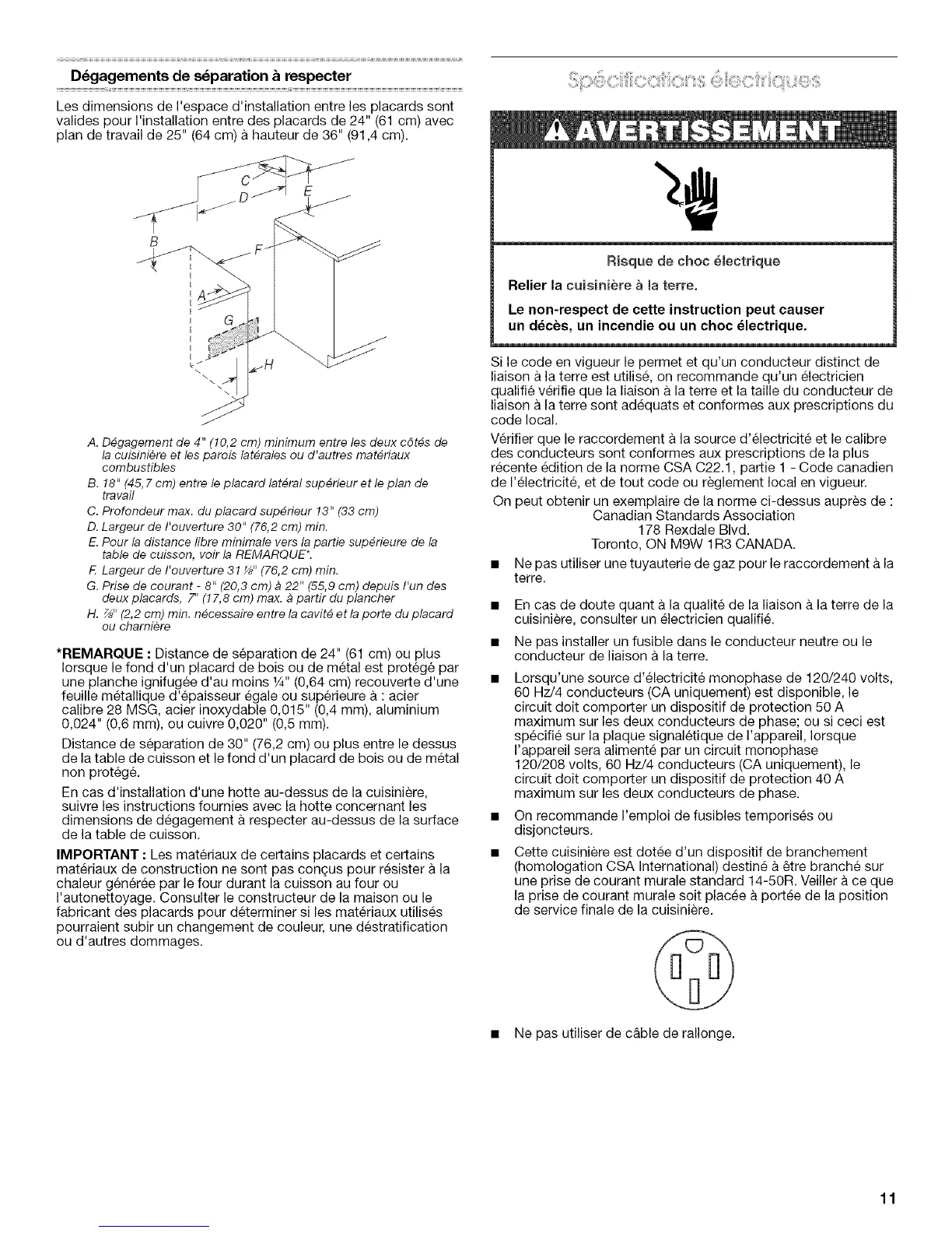*REMARQUE : Distance de separation de 24" (61 cm) ou plus