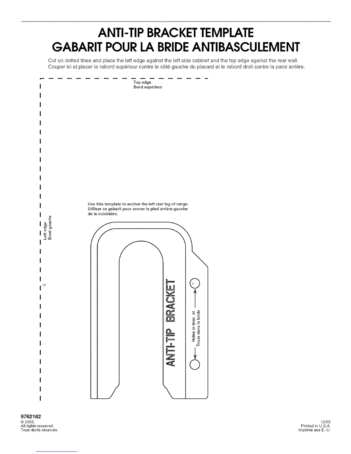 Cut on dotted Iines and place the Ieft edge against the left side cabinet and the top edge against the rear wall,