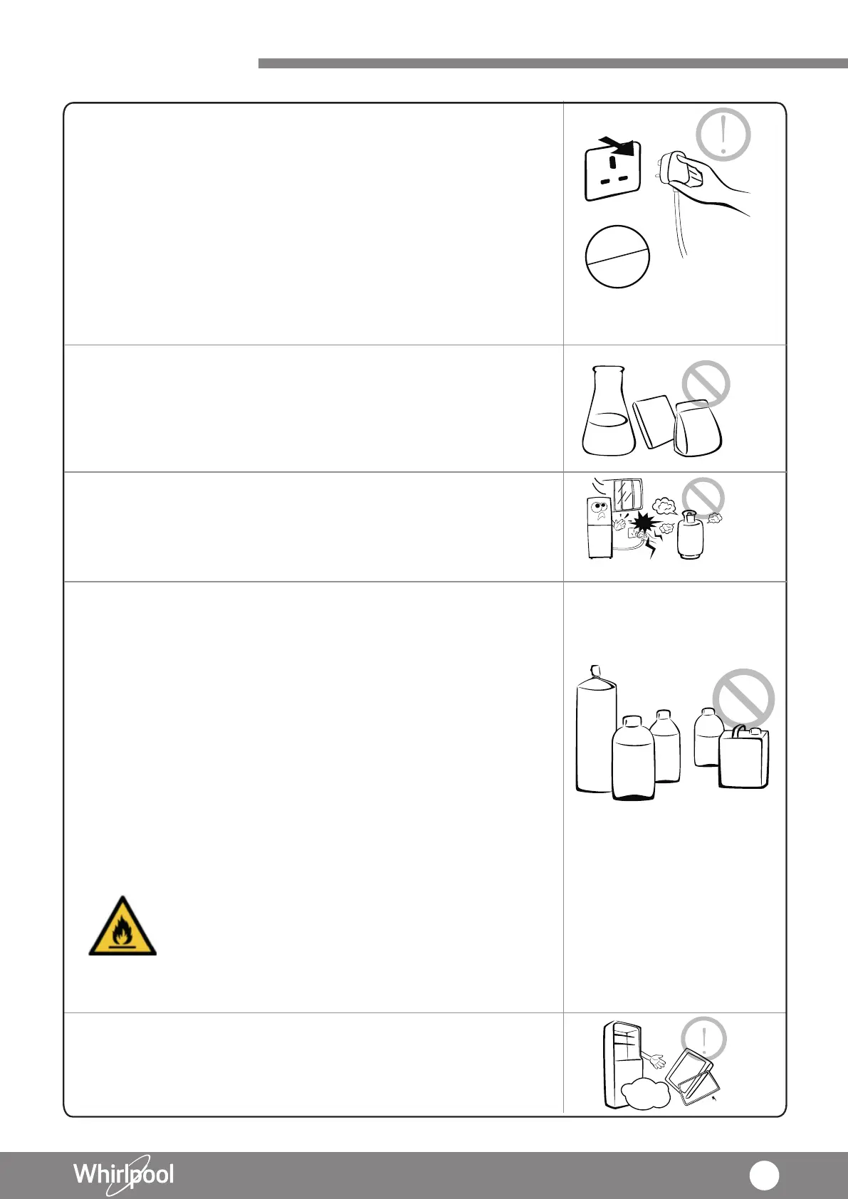 禁止在雪櫃中存放酒精、汽油等易爆危險品及強腐蝕性的酸、鹼等,